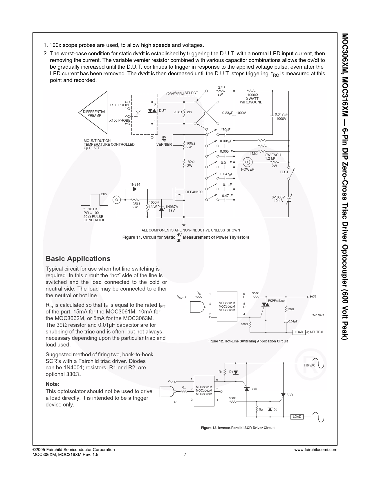 7 MOC306XM, MOC316XM — 6-Pin DIP Zero-Cross Triac Driver Optocoupler (600 Volt Peak) 1. 100x scope probes are used, to allow high speeds and voltages.