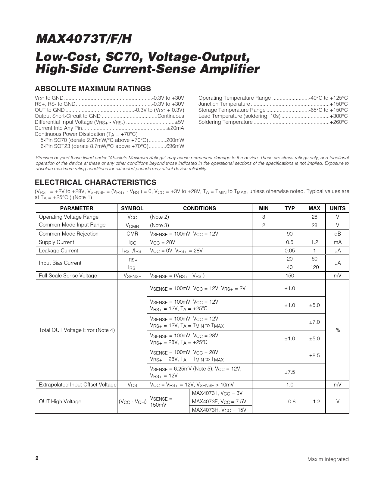 Datasheet MAX4073T, MAX4073F, MAX4073H (Maxim) - 2