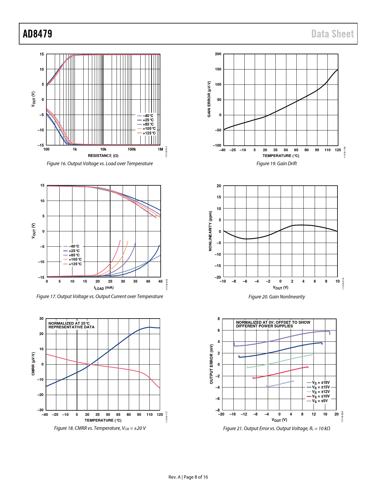 AD8479. Data Sheet. 200. 150. 100. V µ R (. (V). RRO. N E AI. –40°C. +25°C +85°C. –10. +105°C. –50. +125°C. –15. –100. 10k. 100k. –40. –25. 110. 125. RESISTANCE (Ω)