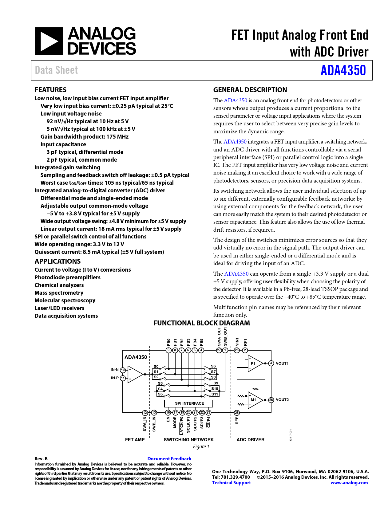 FET Input Analog Front End. with ADC Driver. Data Sheet. ADA4350. FEATURES. GENERAL DESCRIPTION