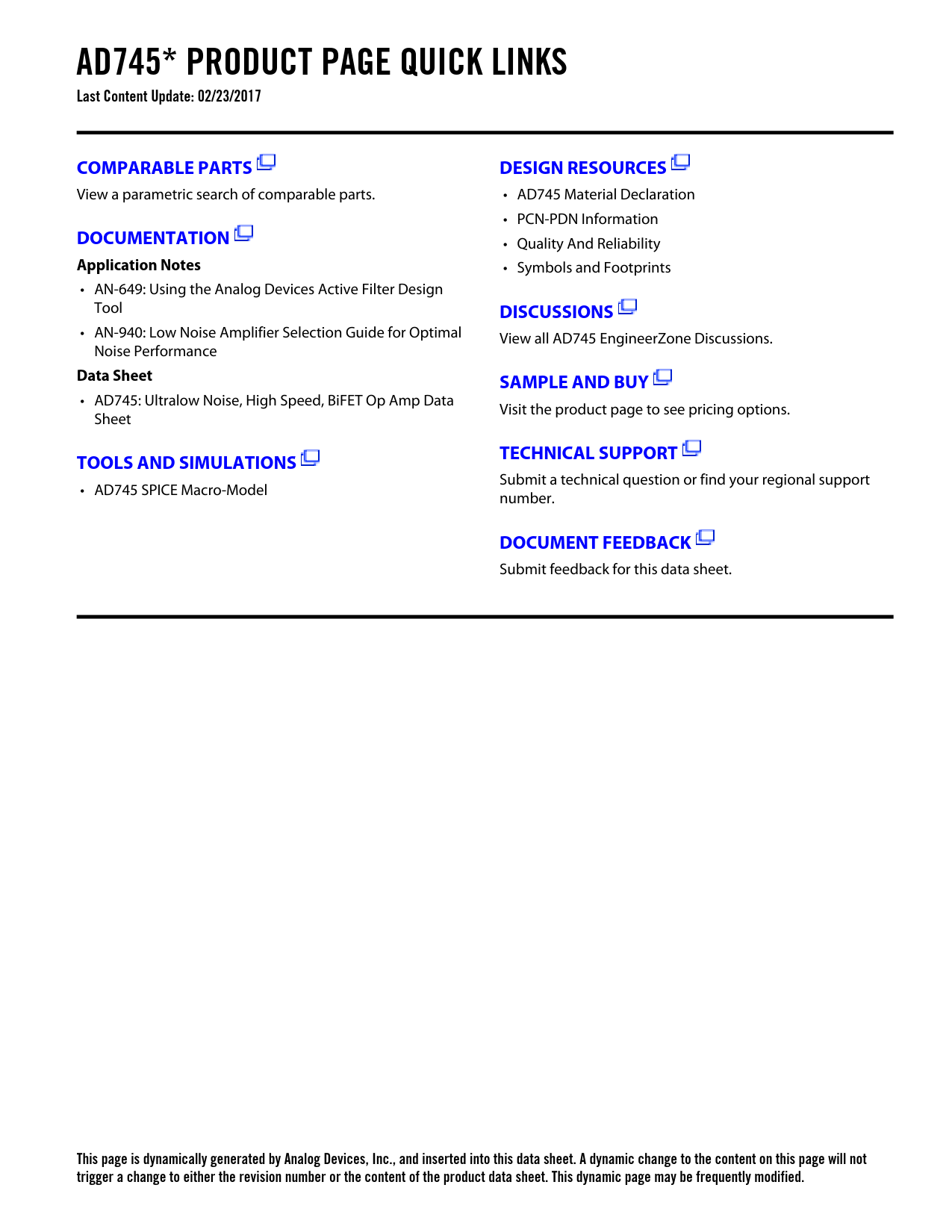 页数 / 页13 / 2 — AD745* PRODUCT PAGE QUICK LINKS Last Content Update: 02/23/2017. …