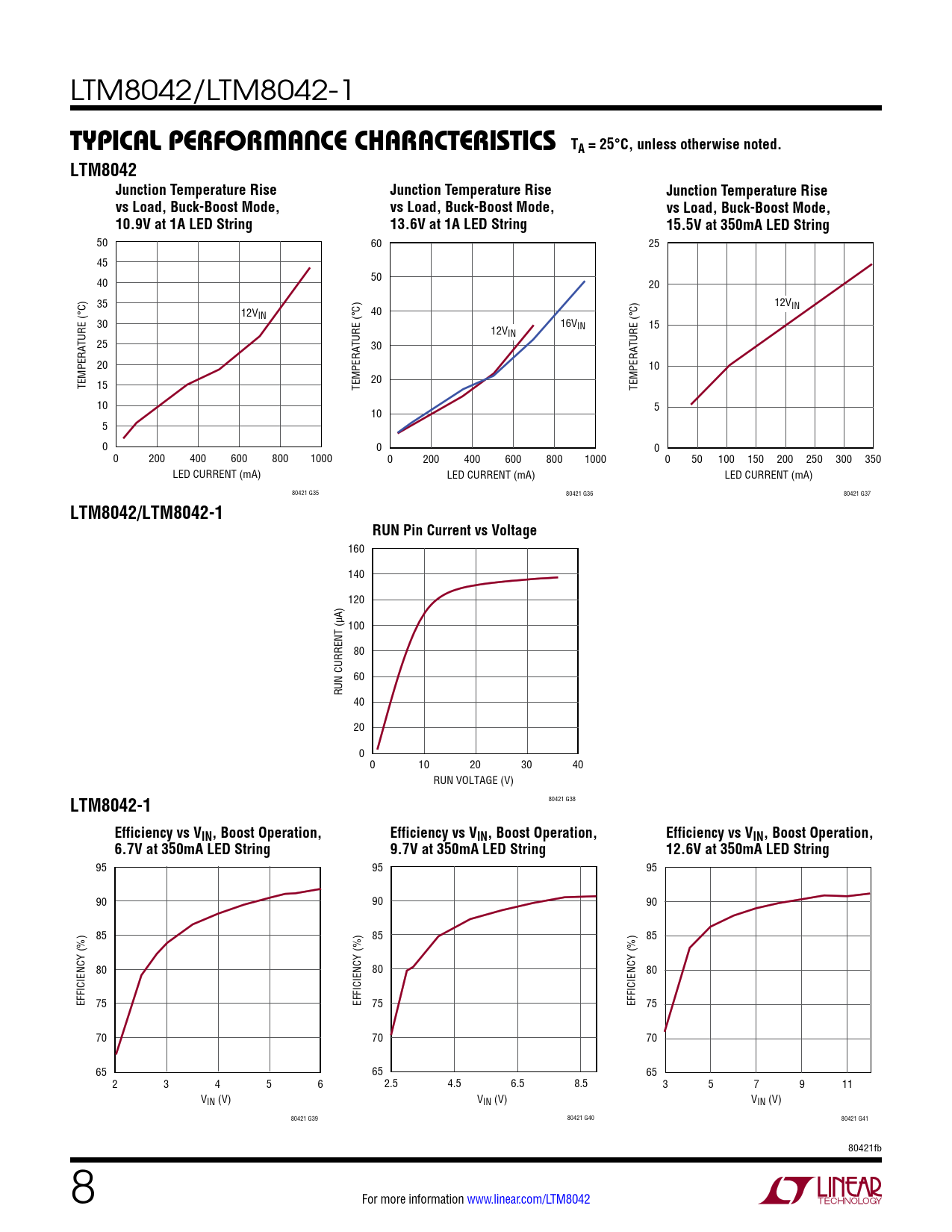 95 95 95 90 90 90 85 85 85 80 80 80 EFFICIENCY (%) 75 EFFICIENCY (%) 75 EFFICIENCY (%) 75 70 70 70 65 65 65 2 3 4 5 6 2.5 4.5 6.5 8.5 3 5 7 9 11 VIN (V) VIN (V) VIN (V) 80421 G39 80421 G40 80421 G41 80421fb 8 For more information www.linear.com/LTM8042