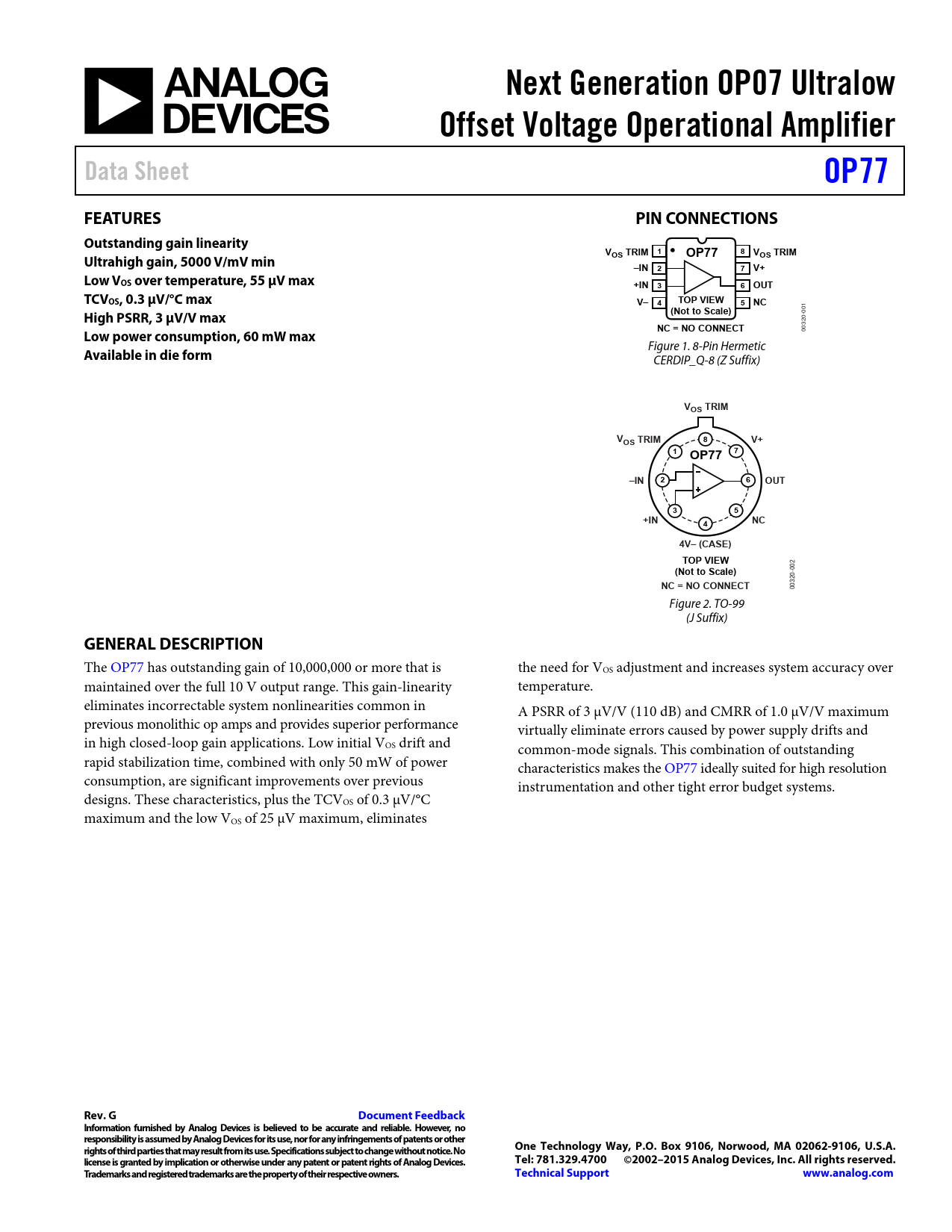 Datasheet OP77 (Analog Devices)