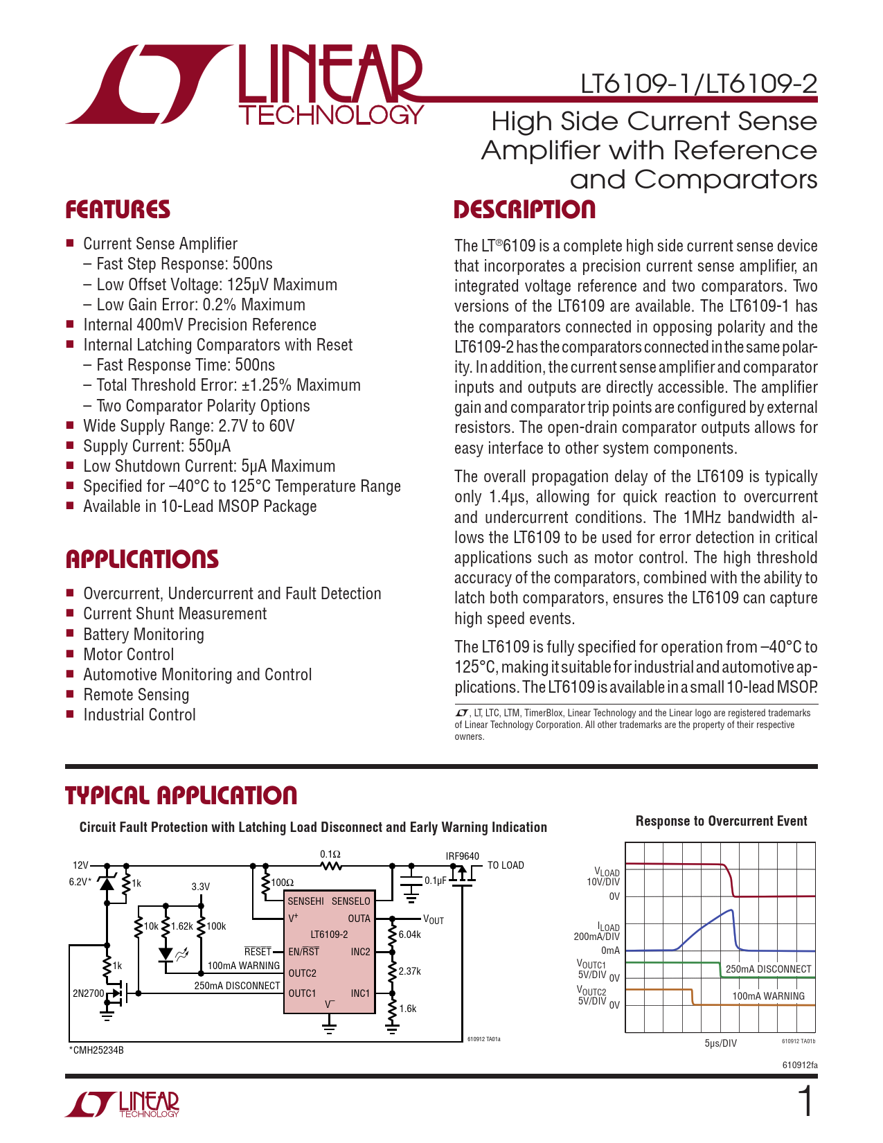 Datasheet LT6109-1, LT6109-2 (Analog Devices)