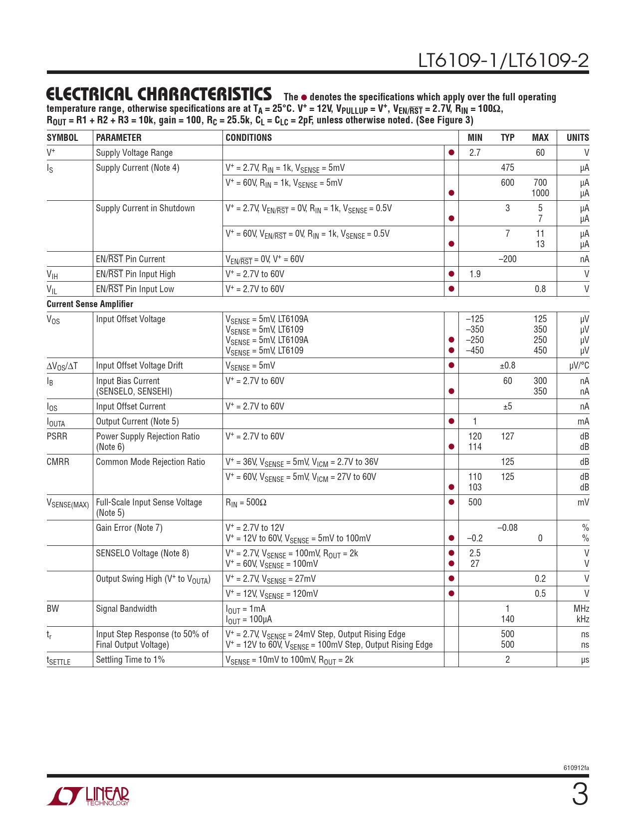 Datasheet LT6109-1, LT6109-2 (Analog Devices) - 3