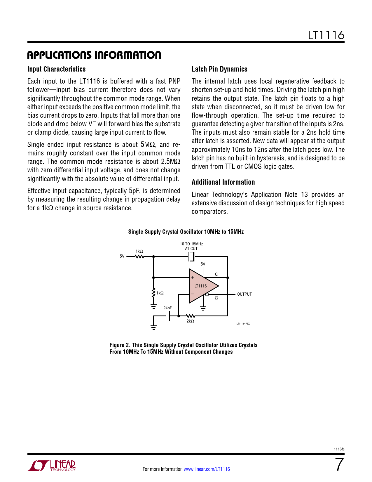 10 TO 15MHz 1kΩ AT CUT 5V 5V Q + LT1116 1kΩ – OUTPUT Q 24pF 2kΩ LT1116 • AI02