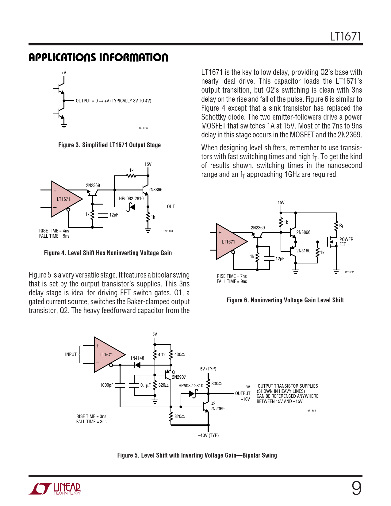 APPLICATIONS INFORMATION. Figure 3. Simplified LT1671 Output Stage. Figure 4. Level Shift Has Noninverting Voltage Gain
