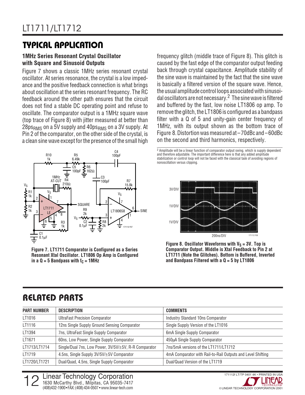 页数 / 页12 / 12 — TYPICAL APPLICATIO. 1MHz Series Resonant Crystal Oscillator. with Square …