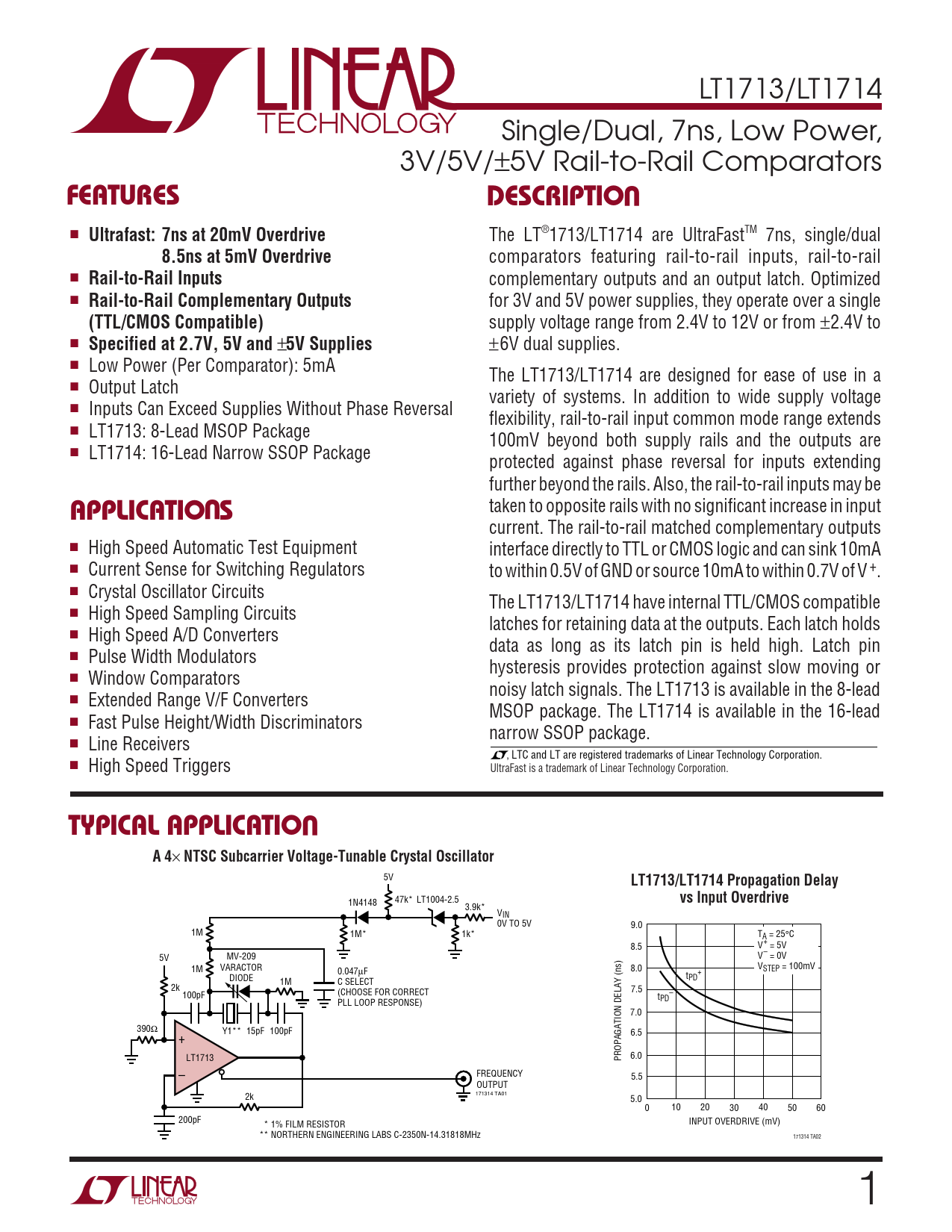 The LT®1713/LT1714 are UltraFastTM 7ns, single/dual