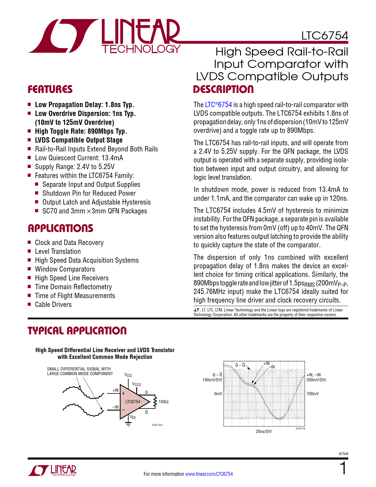 LVDS compatible outputs. The LTC6754 exhibits 1.8ns of