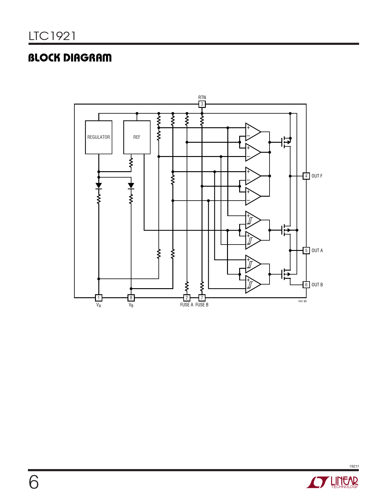RTN 3 + REGULATOR REF – + – + 4 OUT F – + – + – + – 5 OUT A + – + 6 OUT B – 1 8 2 7 1921 BD V V FUSE A A B FUSE B 1921f 6
