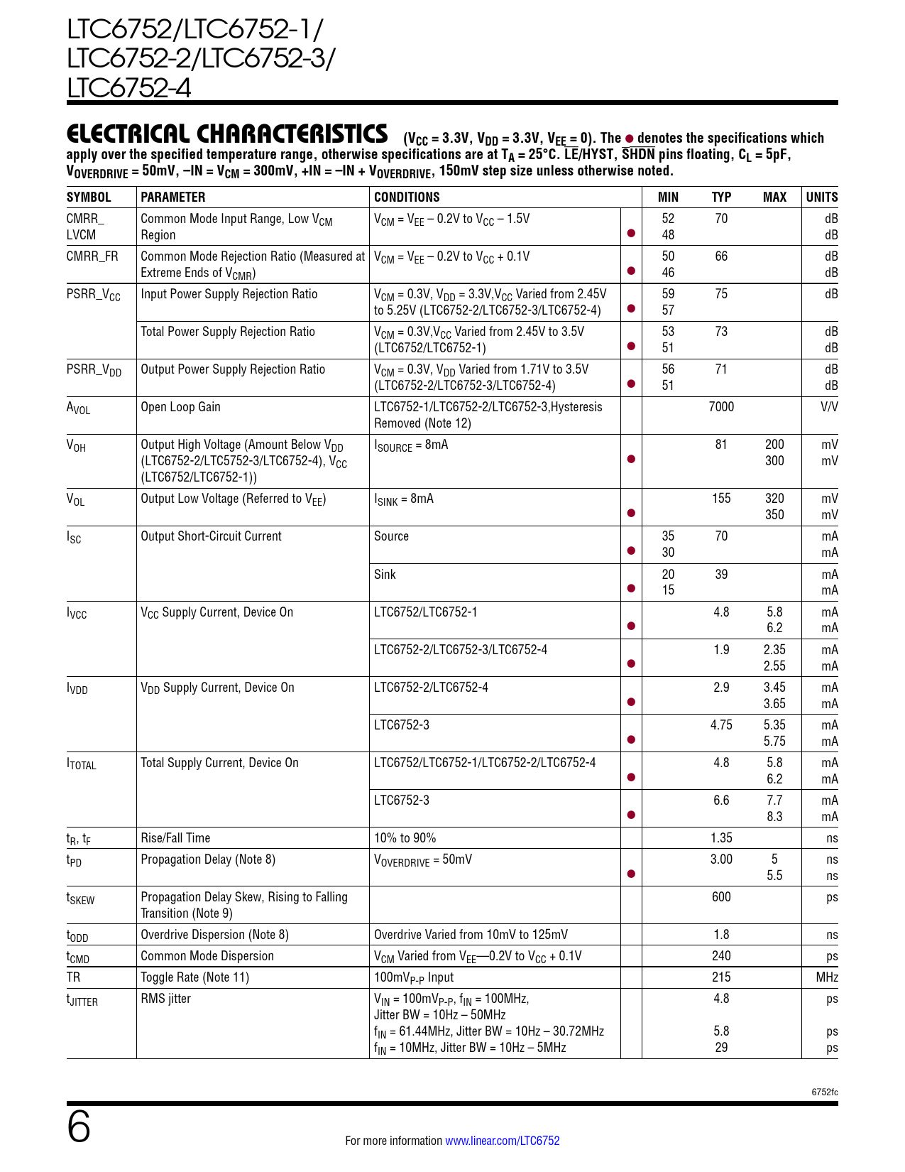 Datasheet LTC6752, LTC6752-1, LTC6752-2, LTC6752-3, LTC6752-4 (Analog Devices) - 6