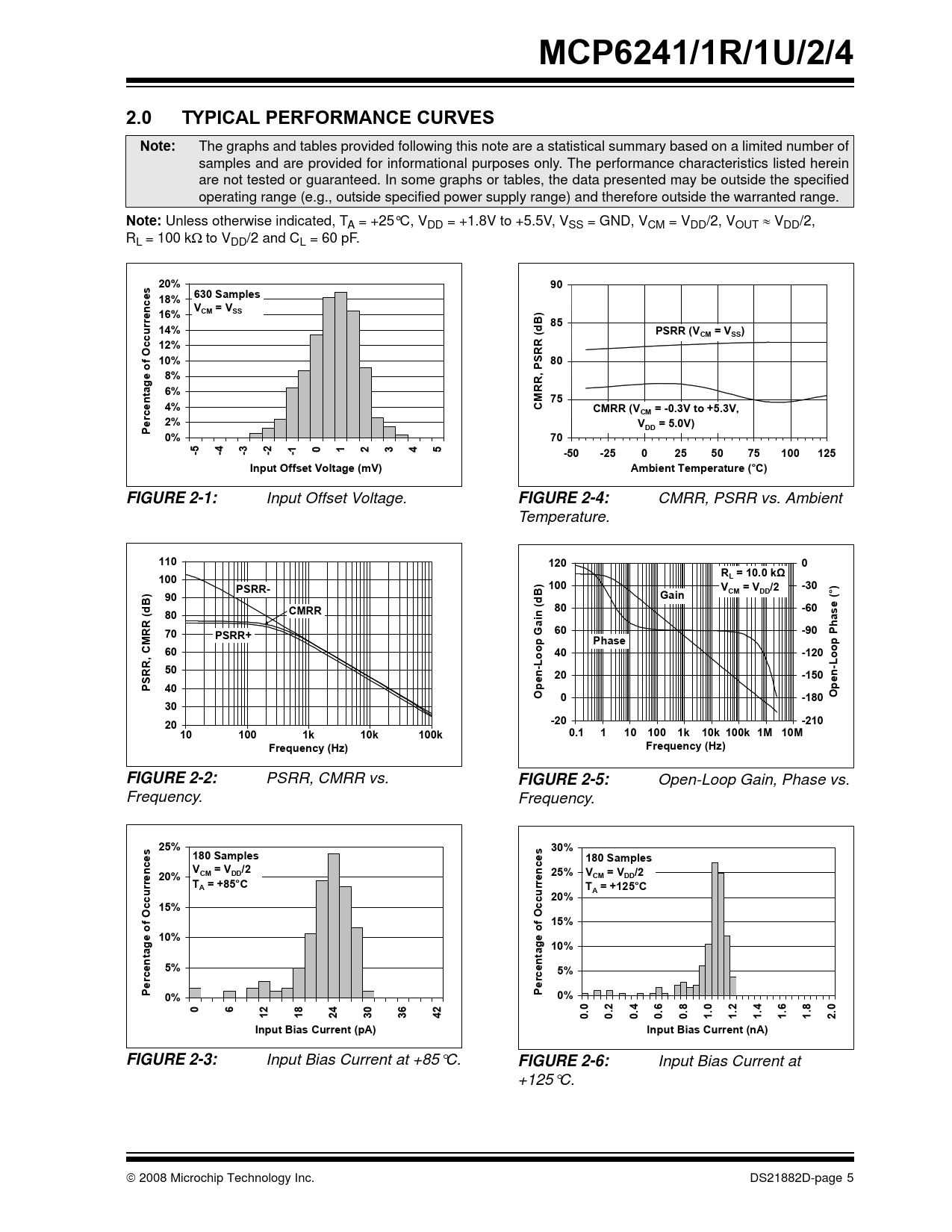 MCP6241/1R/1U/2/4. 2.0. TYPICAL PERFORMANCE CURVES. Note:. 20%. e 18% 630 Samples. 16%. CM = VSS. rre. B 85. u 14%. PSRR (V. CM = VSS). c 12%. 10%
