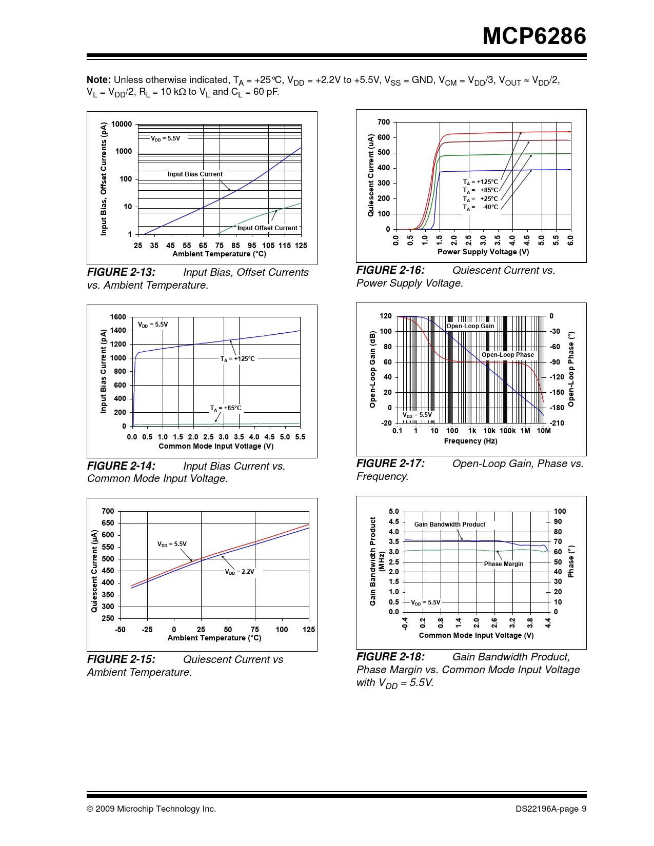 MCP6286. Note:. 10000. 700. A) p s (. 600. DD = 5.5V. A) u. 1000. 500. nt ( re. Current. 400. Input Bias Current. 100. fset. 300. TA = +125°C. ent Cur