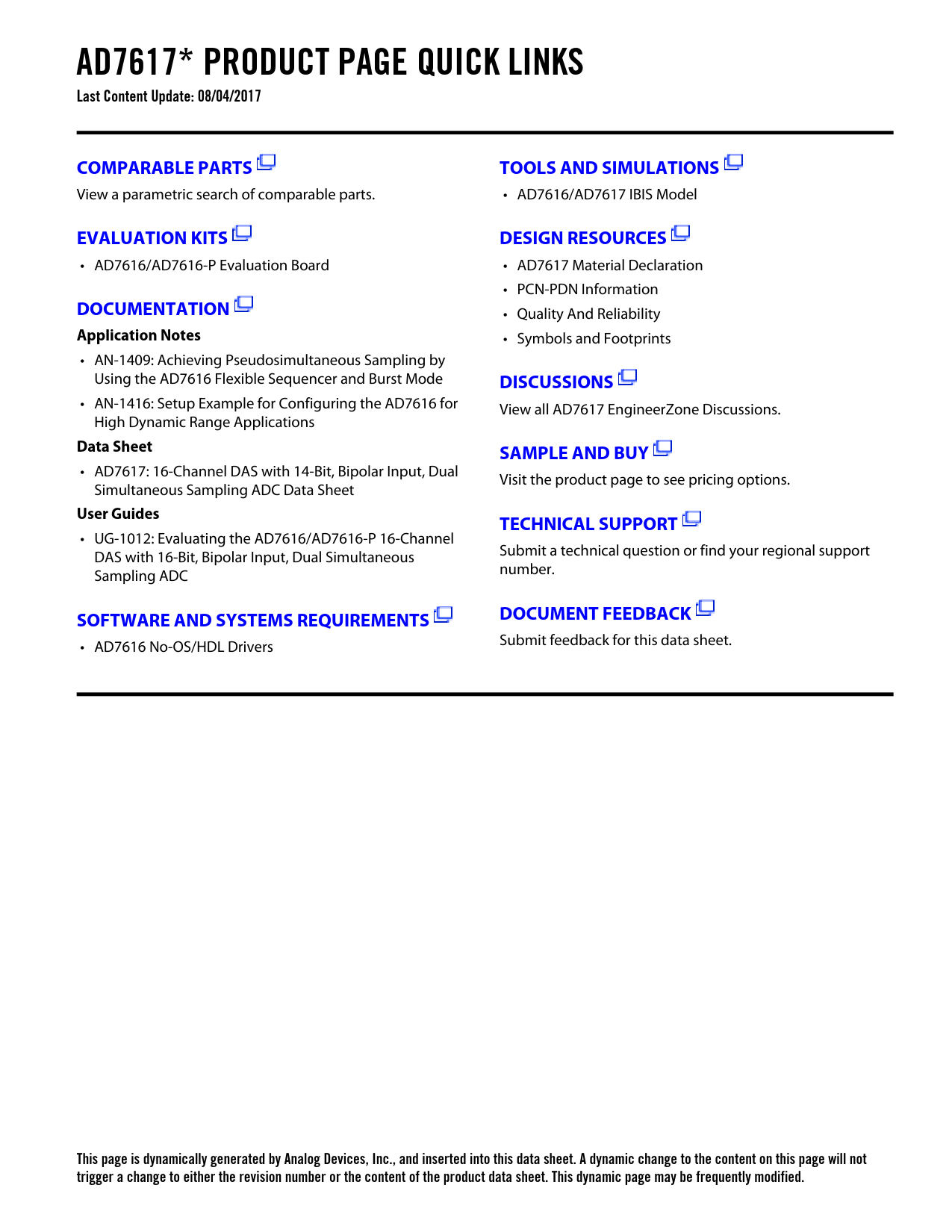 This page is dynamically generated by Analog Devices, Inc., and inserted into this data sheet. A dynamic change to the content on this page will not trigger a change to either the revision number or the content of the product data sheet. This dynamic page may be frequently modified.