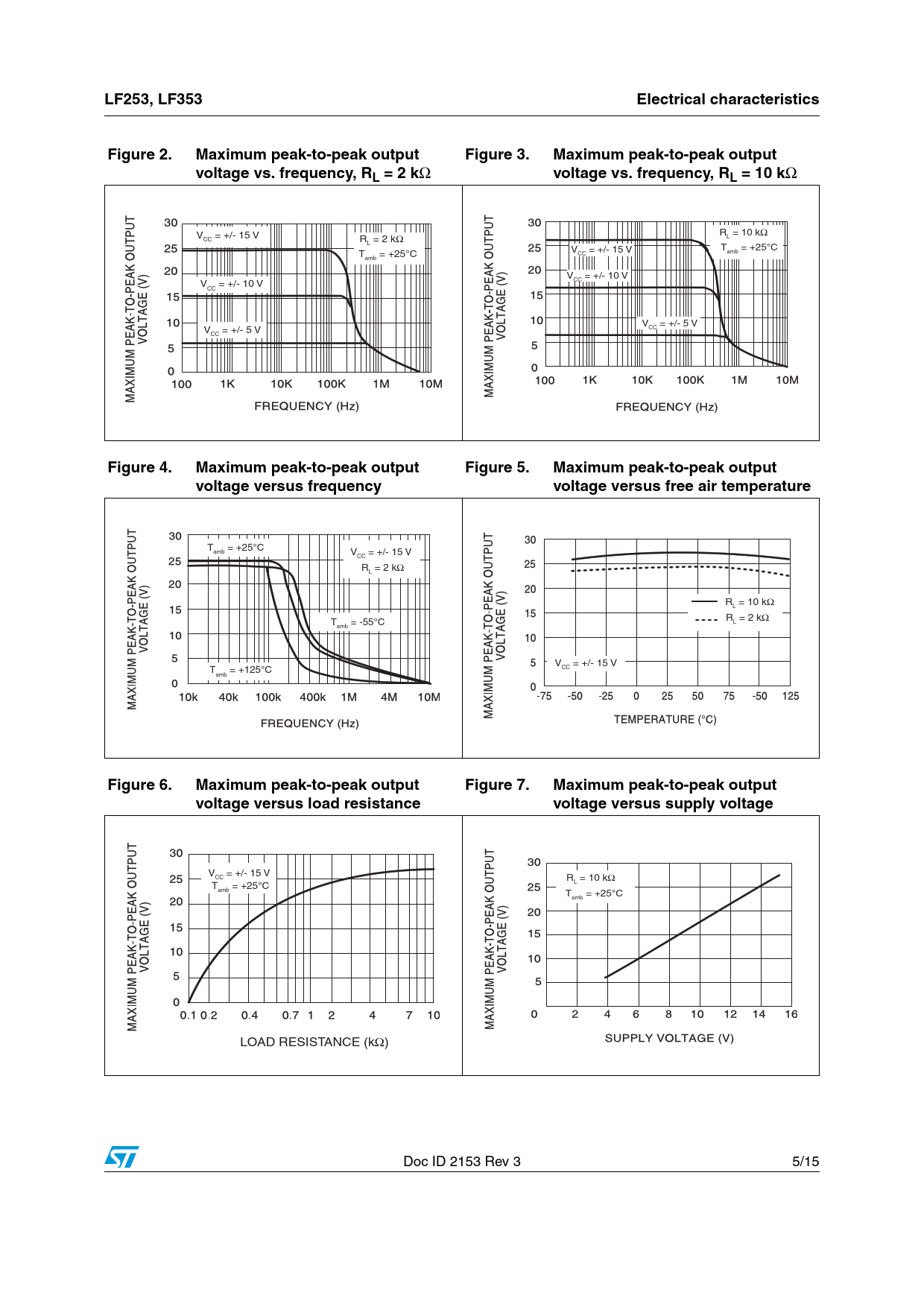页数 / 页15 / 5 — LF253, LF353. Electrical characteristics. Figure 2. Maximum peak-to-peak …