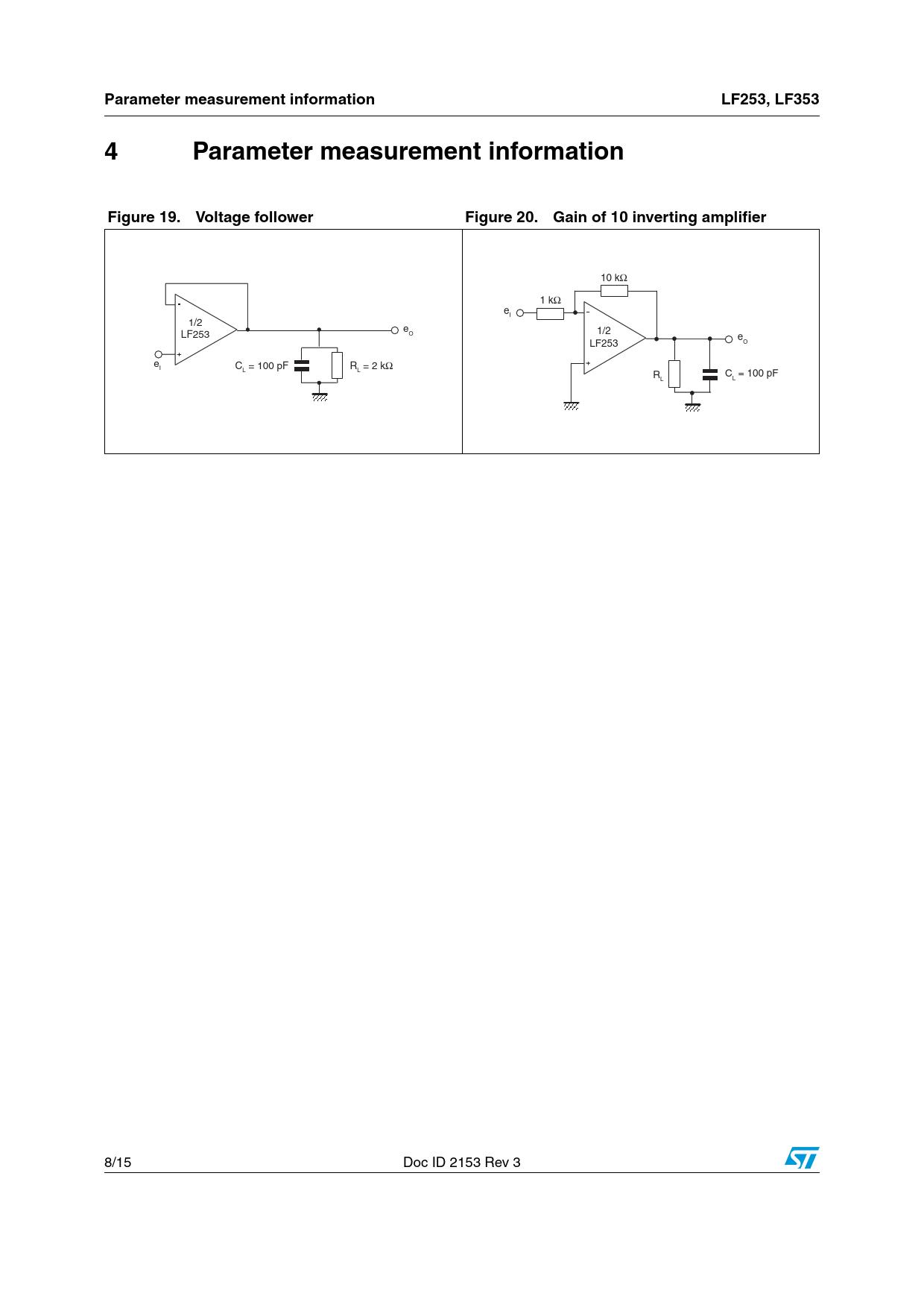 Parameter measurement information. LF253, LF353. 4 Parameter. measurement. information. Figure 19. Voltage follower. Figure 20