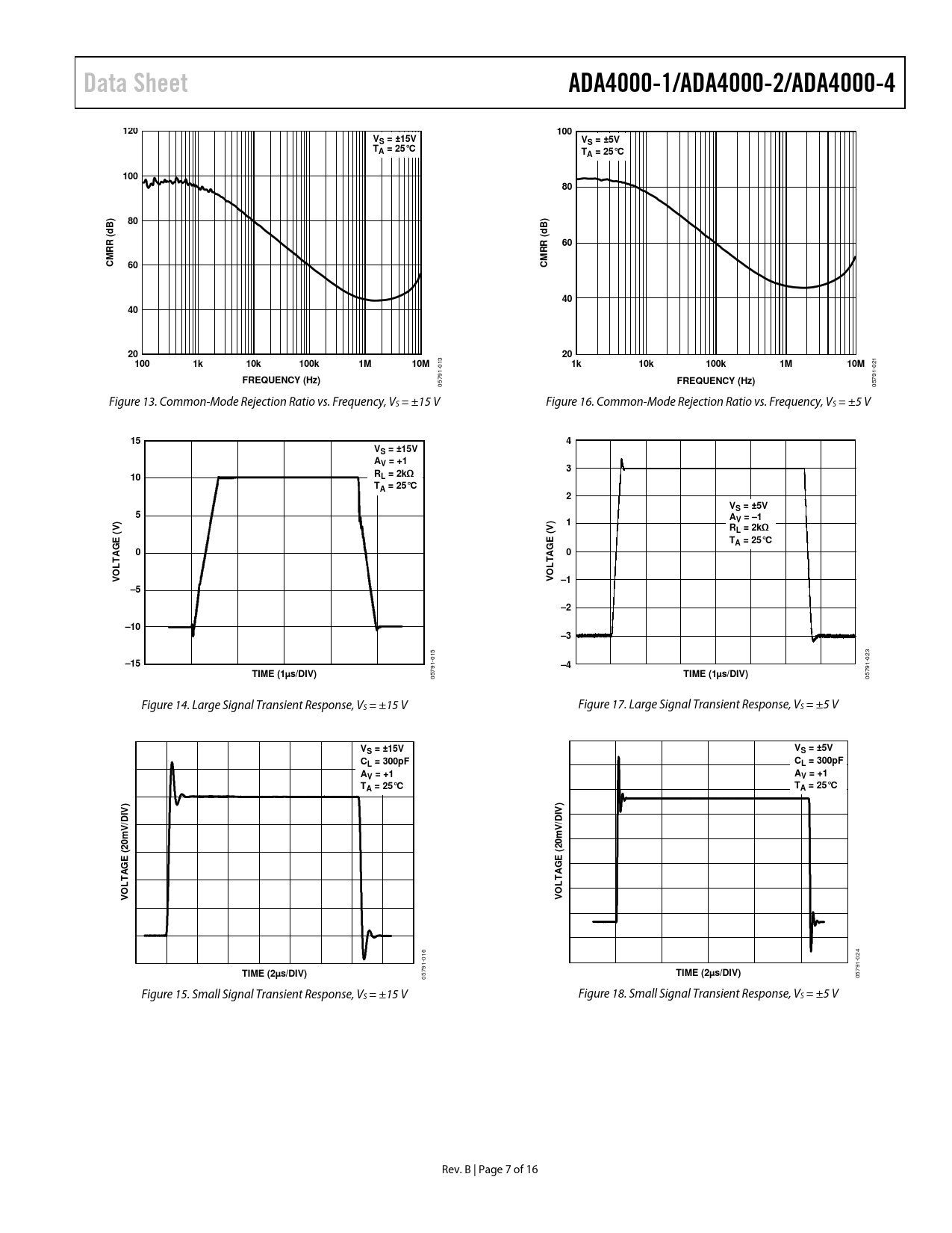 Data Sheet ADA4000-1/ADA4000-2/ADA4000-4 120 100 VS = ±15V VS = ±5V TA = 25°C RR ( 10k 100k 10M FREQUENCY (Hz) VS = ±15V AV = +1