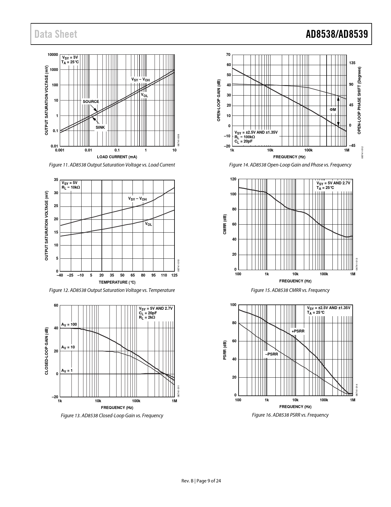 Data Sheet. AD8538/AD8539. 10000. VSY = 5V. TA = 25°C. 135. V) 1000. rees). E (m. SY – VOH. Deg. 100. N (. S E. TION. SOURCE. O O. HAS. PEN. T S. SINK. 0.1