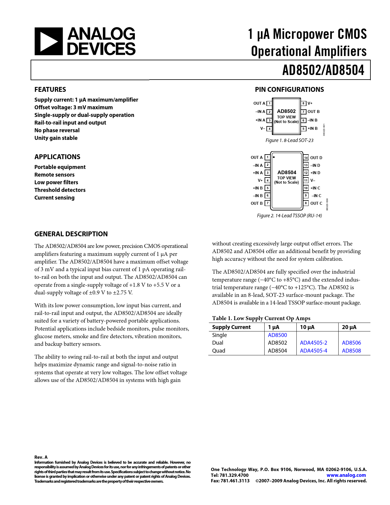 Datasheet AD8502, AD8504 (Analog Devices)