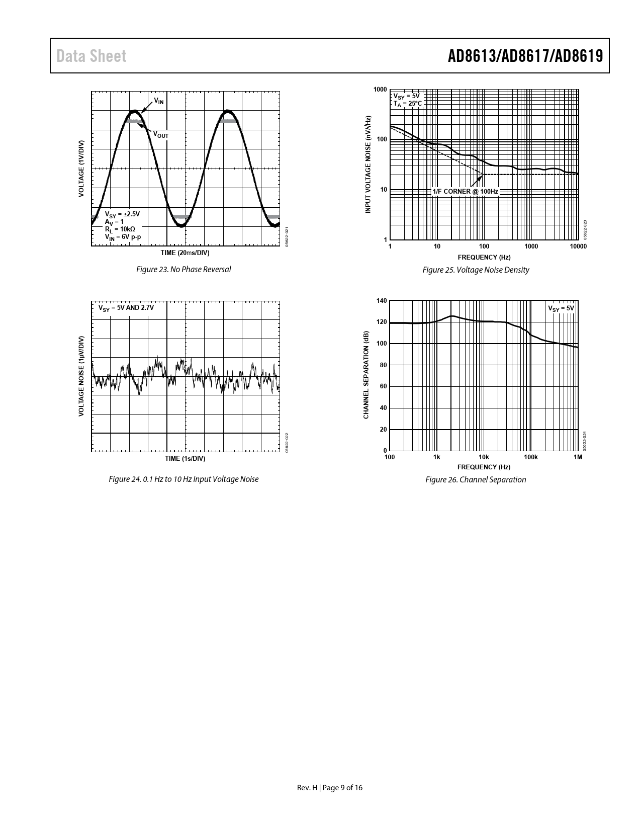 | 页数 / 页 | 16 / 9 — Data Sheet. AD8613/AD8617/AD8619. 1000 V. SY = 5V. TA = 25ºC. ) Hz. OUT. … |