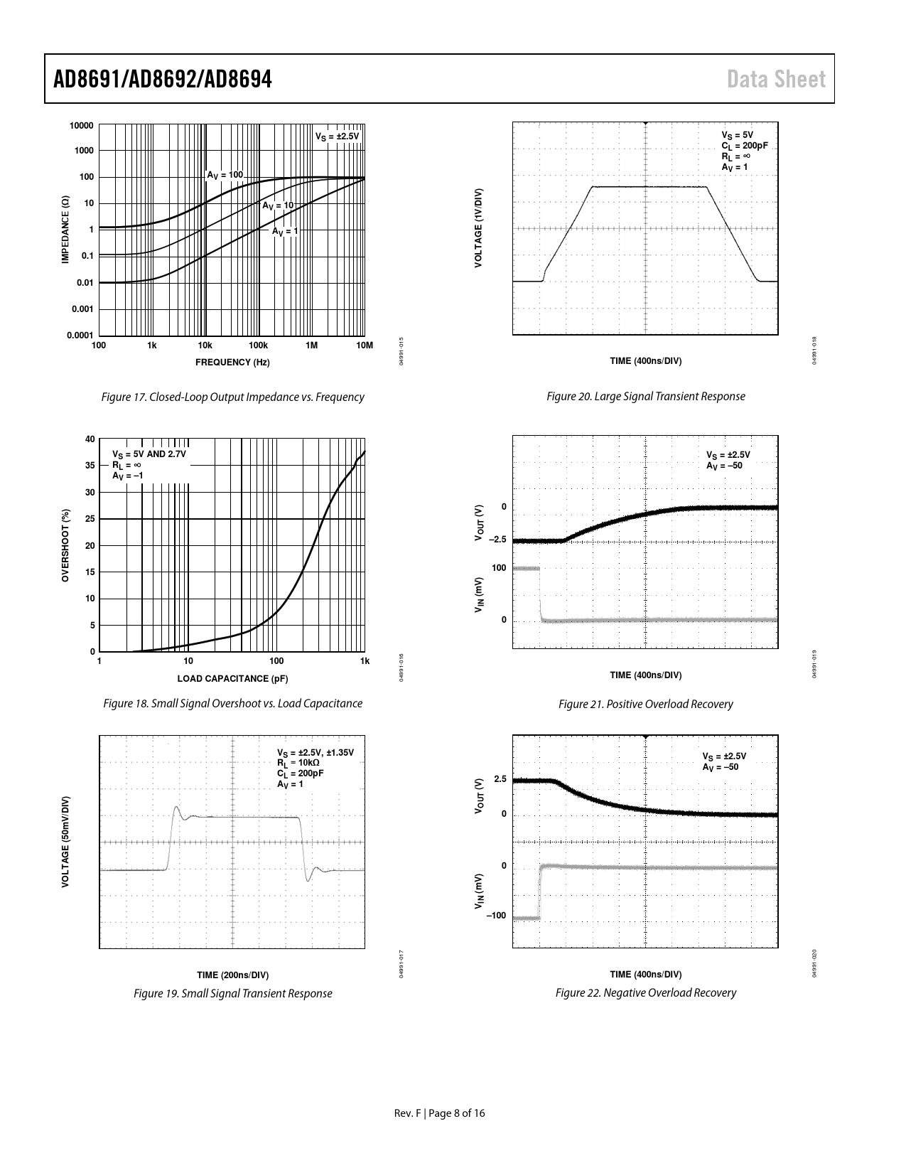 04991- 04991- Figure 18. Small Signal Overshoot vs. Load Capacitance Figure 21. Positive Overload Recovery