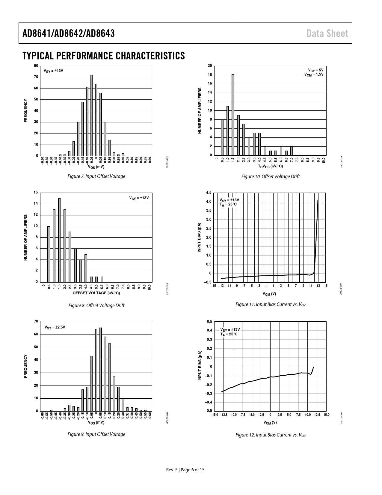 05072-006 Figure 8. Offset Voltage Drift Figure 11. Input Bias Current vs. VCM