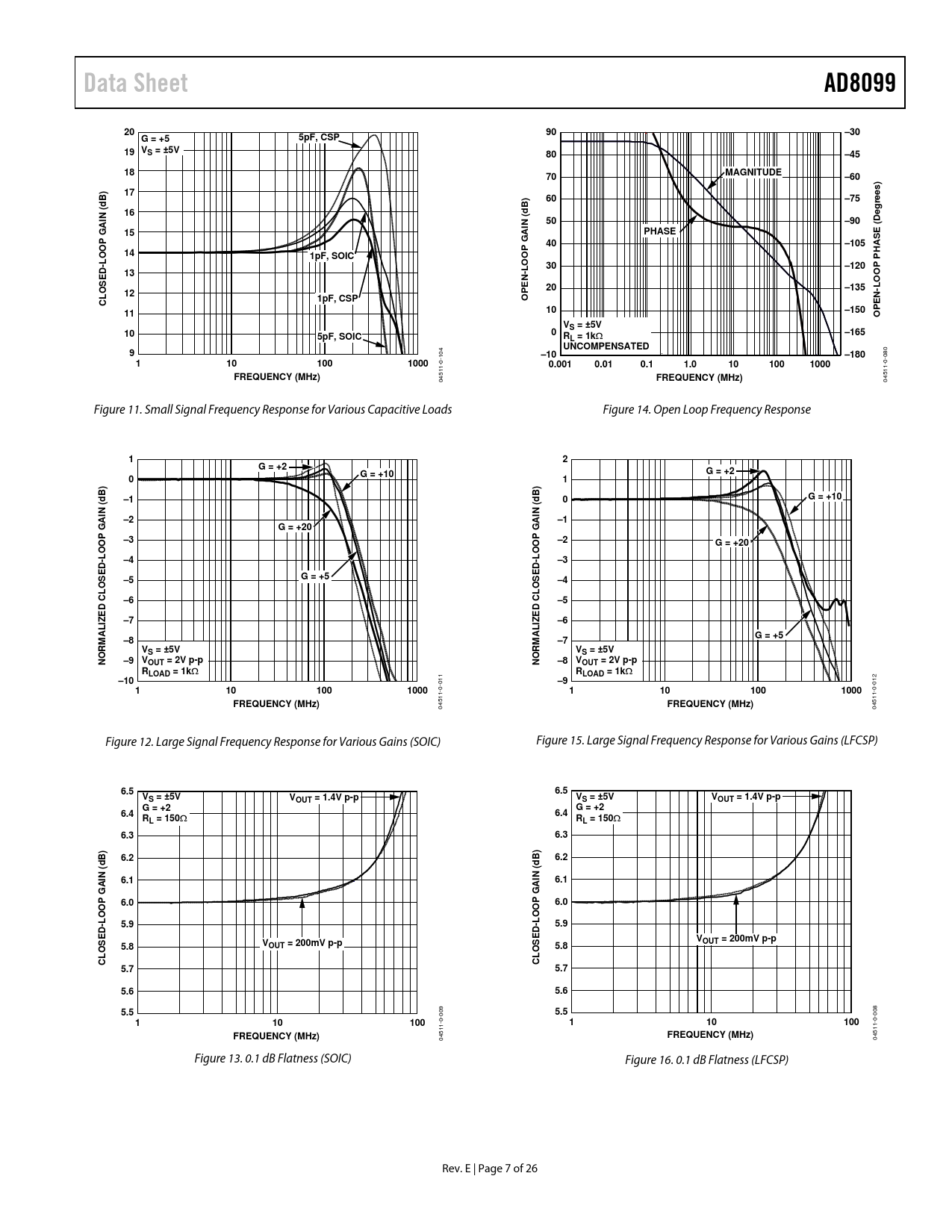 Data Sheet. AD8099. –30. G = +5. 5pF, CSP. 19 VS = ±5V. –45. MAGNITUDE. –60. –75. –90. PHASE. –105. 1pF, SOIC. –120. –135. 1pF, CSP. OPEN-LOOP GAIN (dB)