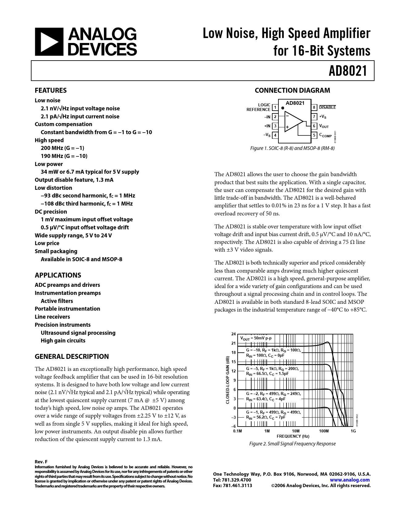 | 页数 / 页 | 30 / 1 — Low Noise, High Speed Amplifier. for 16-Bit Systems. AD8021. FEATURES. … |