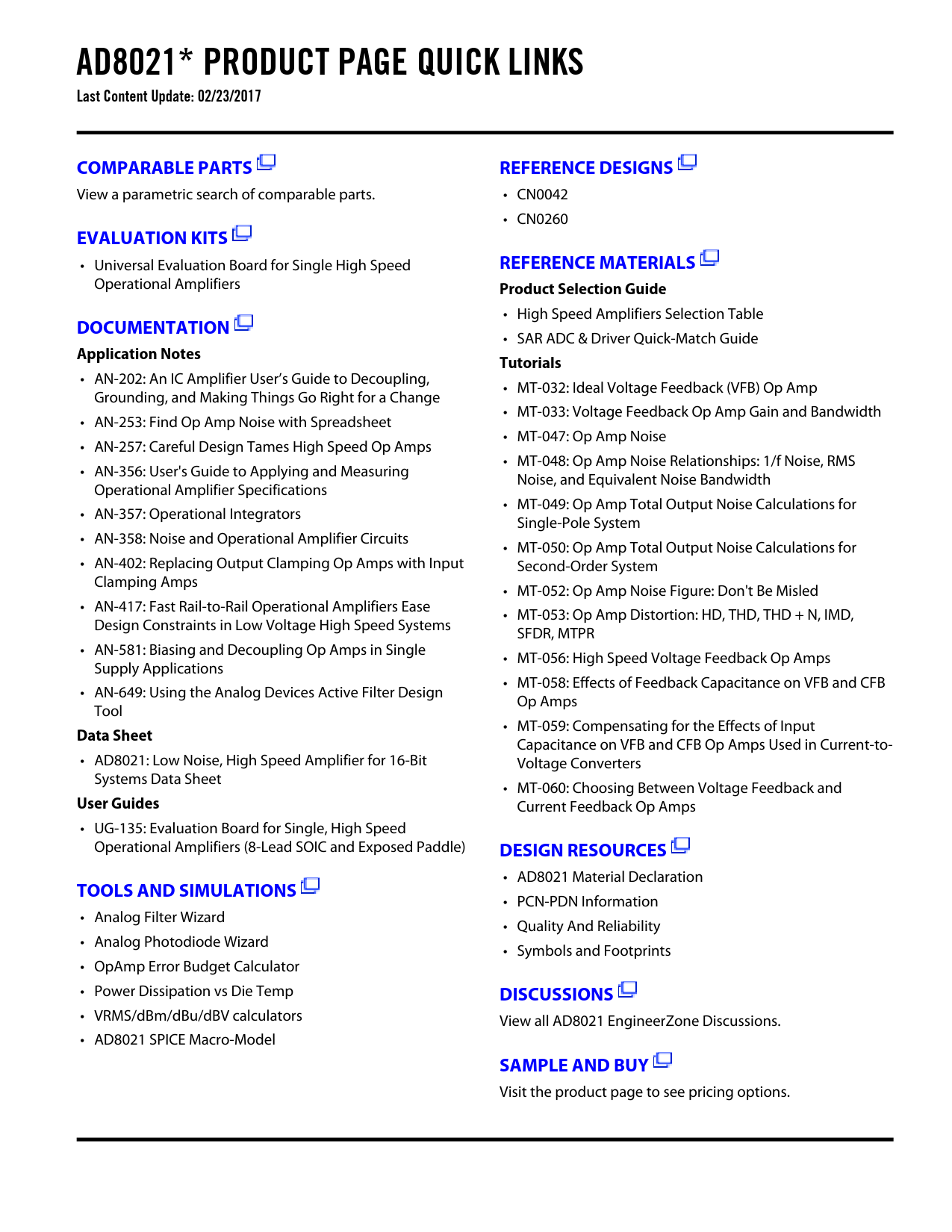 AD8021* PRODUCT PAGE QUICK LINKS Last Content Update: 02/23/2017. COMPARABLE PARTS. REFERENCE DESIGNS. EVALUATION KITS