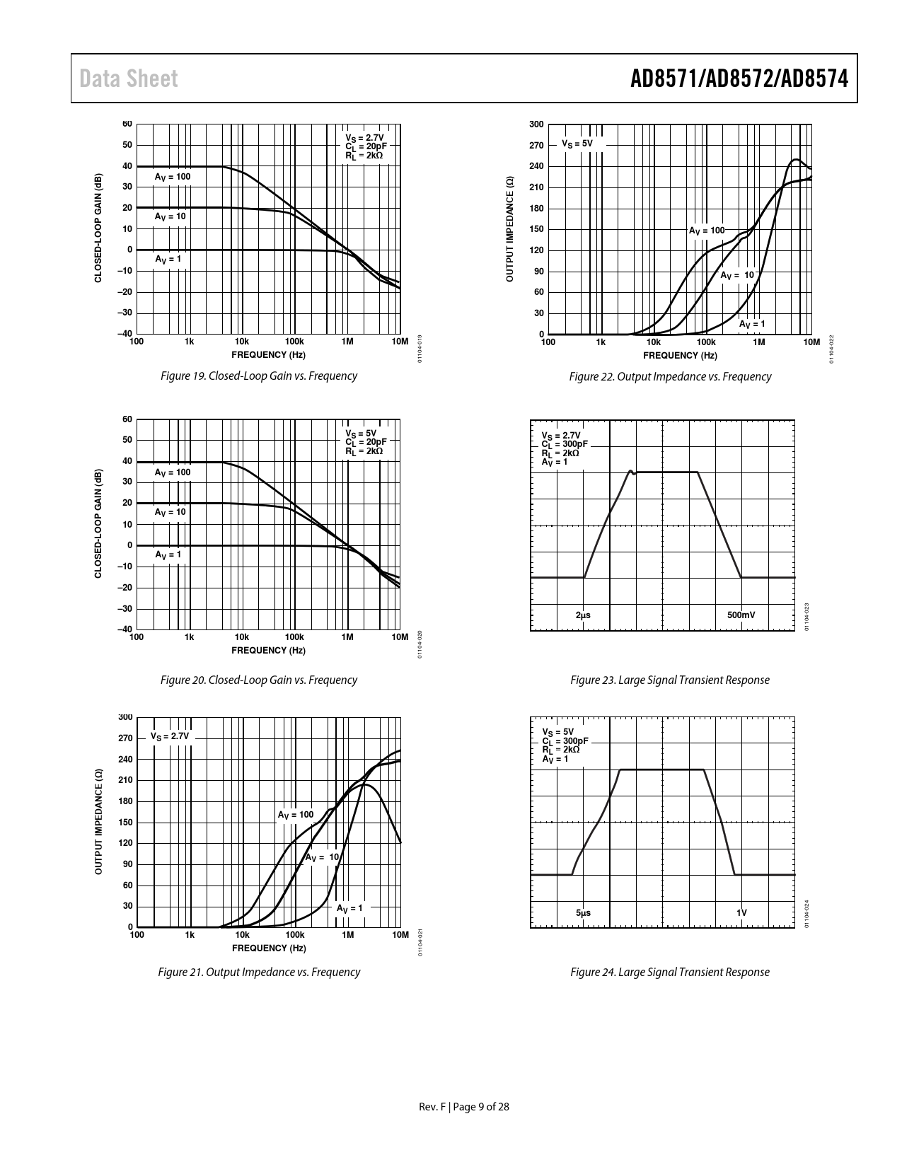 Data Sheet. AD8571/AD8572/AD8574. 300. VS = 2.7V. 270. L = 20pF. S = 5V. RL = 2kΩ. 240. V = 100. 210. 180. AV = 10. 150. PEDANCE. AV = 100. -LOOP. 120