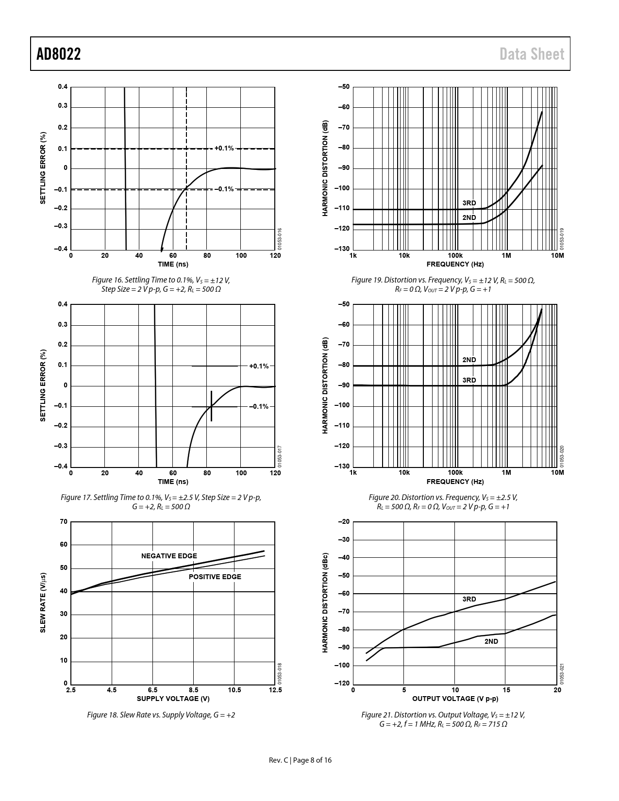 AD8022. Data Sheet. 0.4. –50. 0.3. –60. 0.2. –70. 0.1. +0.1%. –80. RROR (%. –90. –0.1%. –100. TTLING E. –0.1. E S. 3RD. –0.2. –110. HARMONIC DISTORTION (dB). 2ND