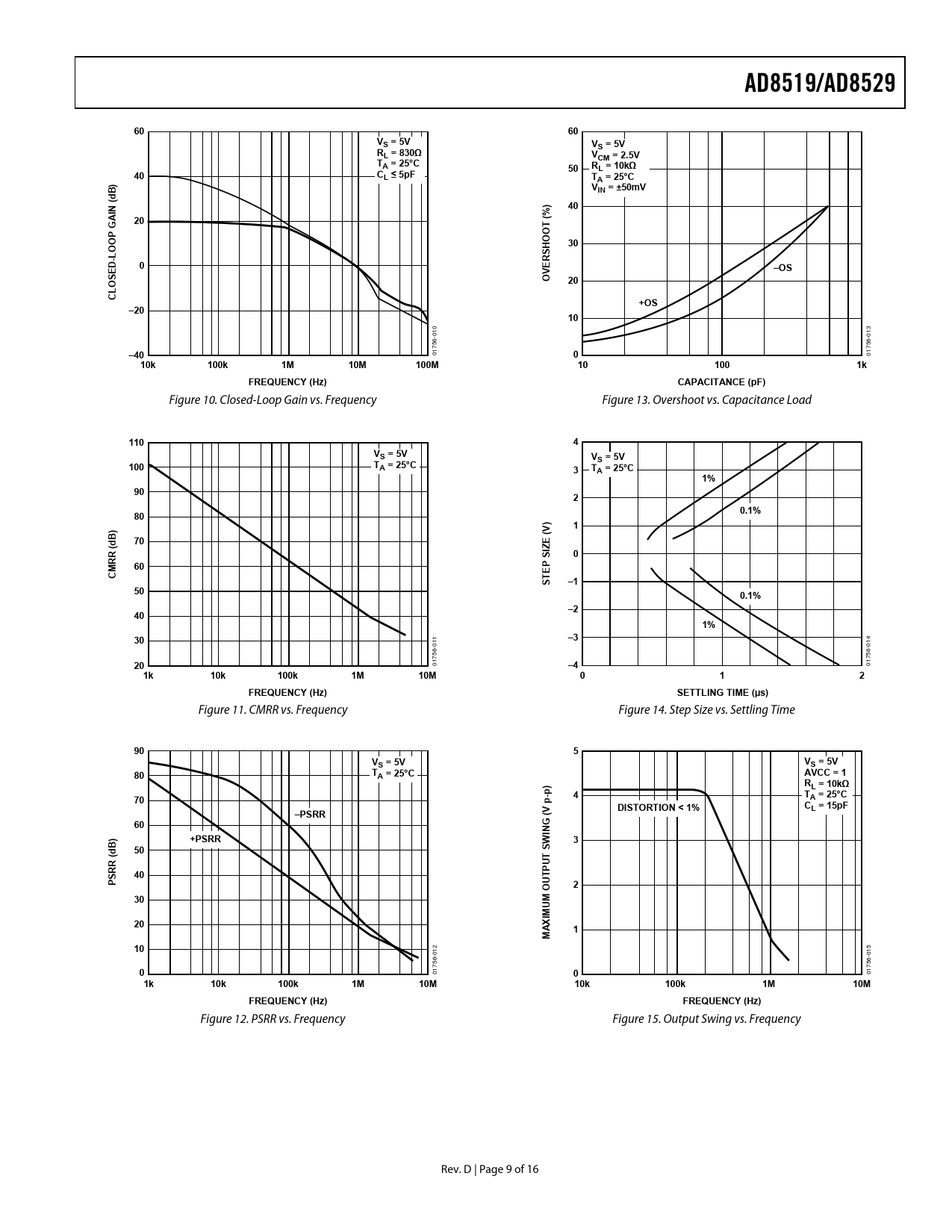 AD8519/AD8529. VS = 5V. RL = 830Ω. VCM = 2.5V. TA = 25°C. RL = 10kΩ. CL ≤ 5pF. A = 25°C. VIN = ±50mV. d (. OOT. OOP. H S. –OS. L C. +OS. –20. –40. 10k. 100k