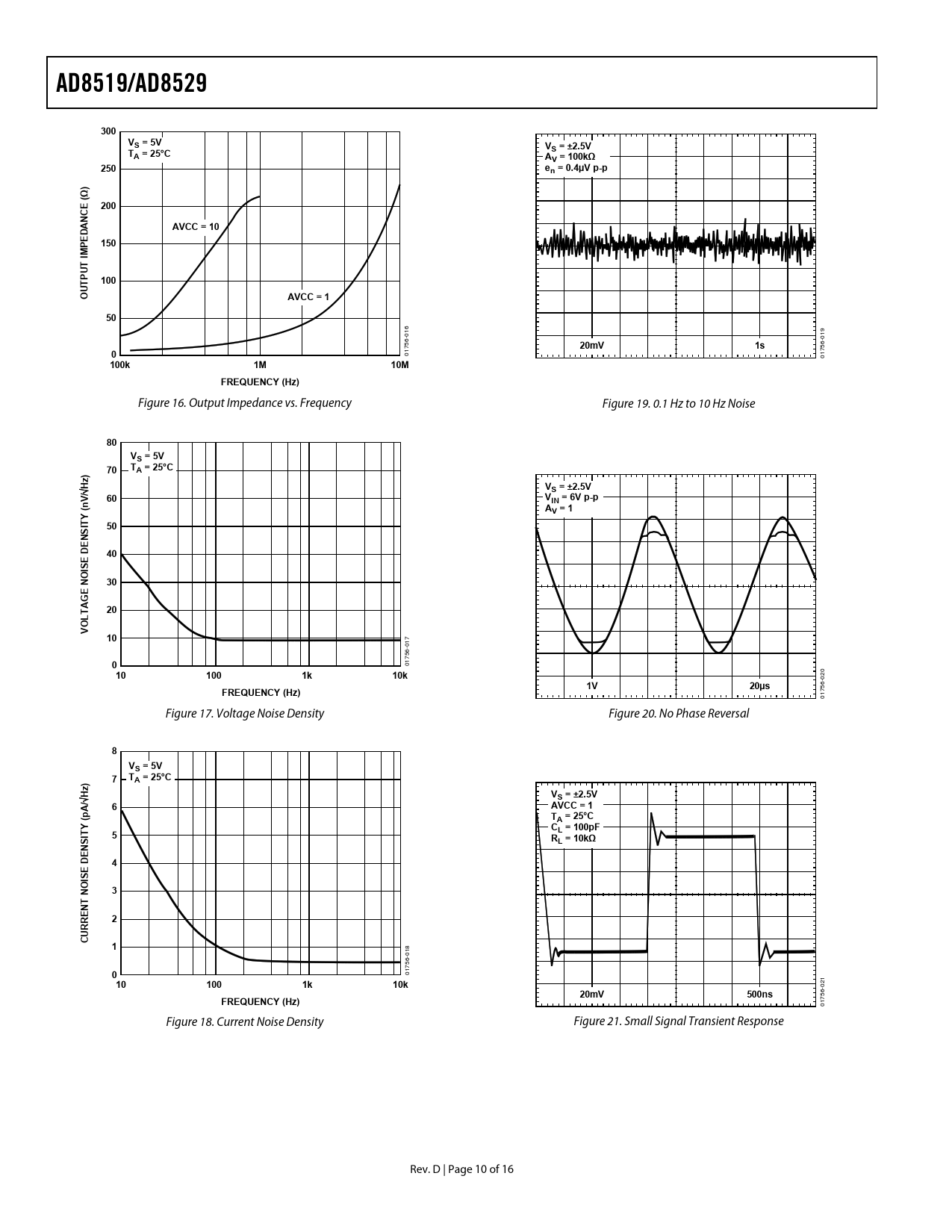 AD8519/AD8529. 300. VS = 5V. S = ±2.5V. A = 25°C. AV = 100kΩ. 250. en = 0.4µV p-p. ) Ω (. 200. NCE. AVCC = 10. DA E P. 150. M I UT P. 100. UT O. AVCC = 1