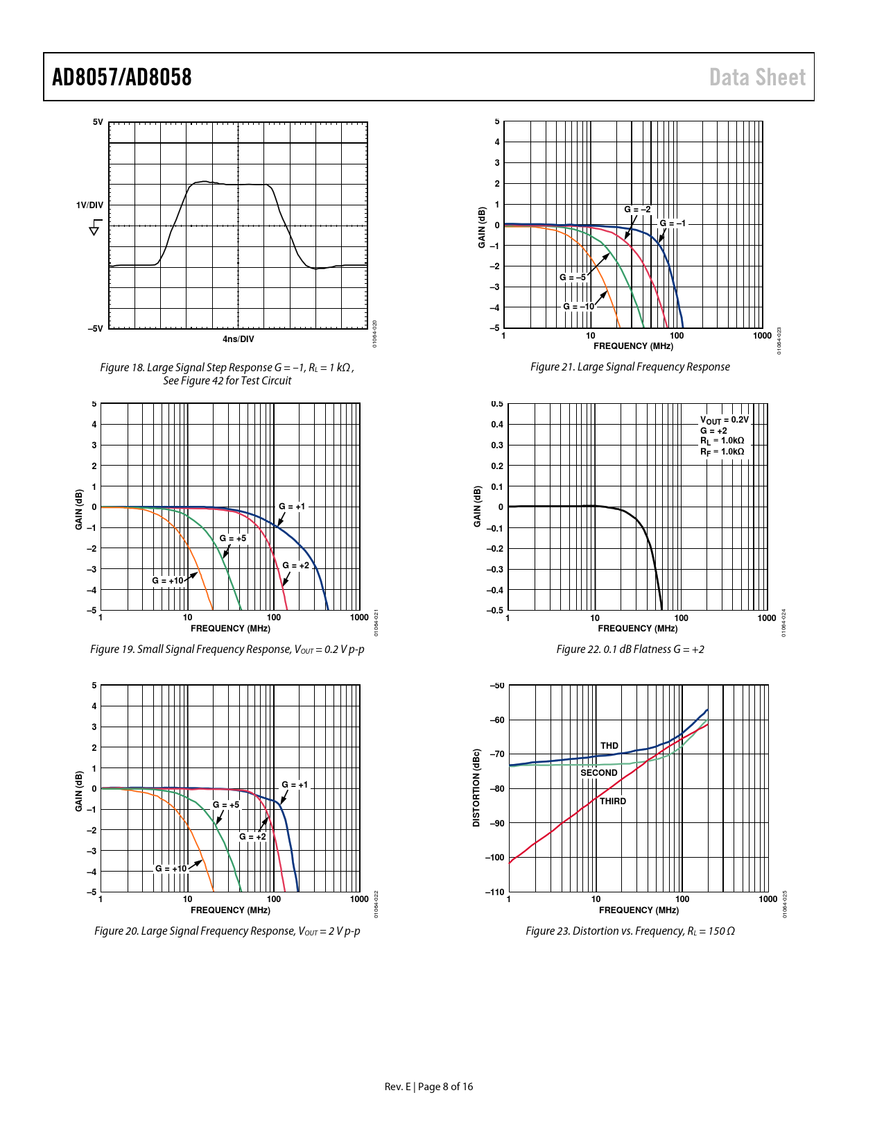 AD8057/AD8058. Data Sheet. 1V/DIV. G = –2. G = –1. N ( AI G –1. G = –5. G = –10. –5V. –5 1. 100. 1000. 4ns/DIV. FREQUENCY (MHz). 0.5. 0.4. OUT = 0.2V