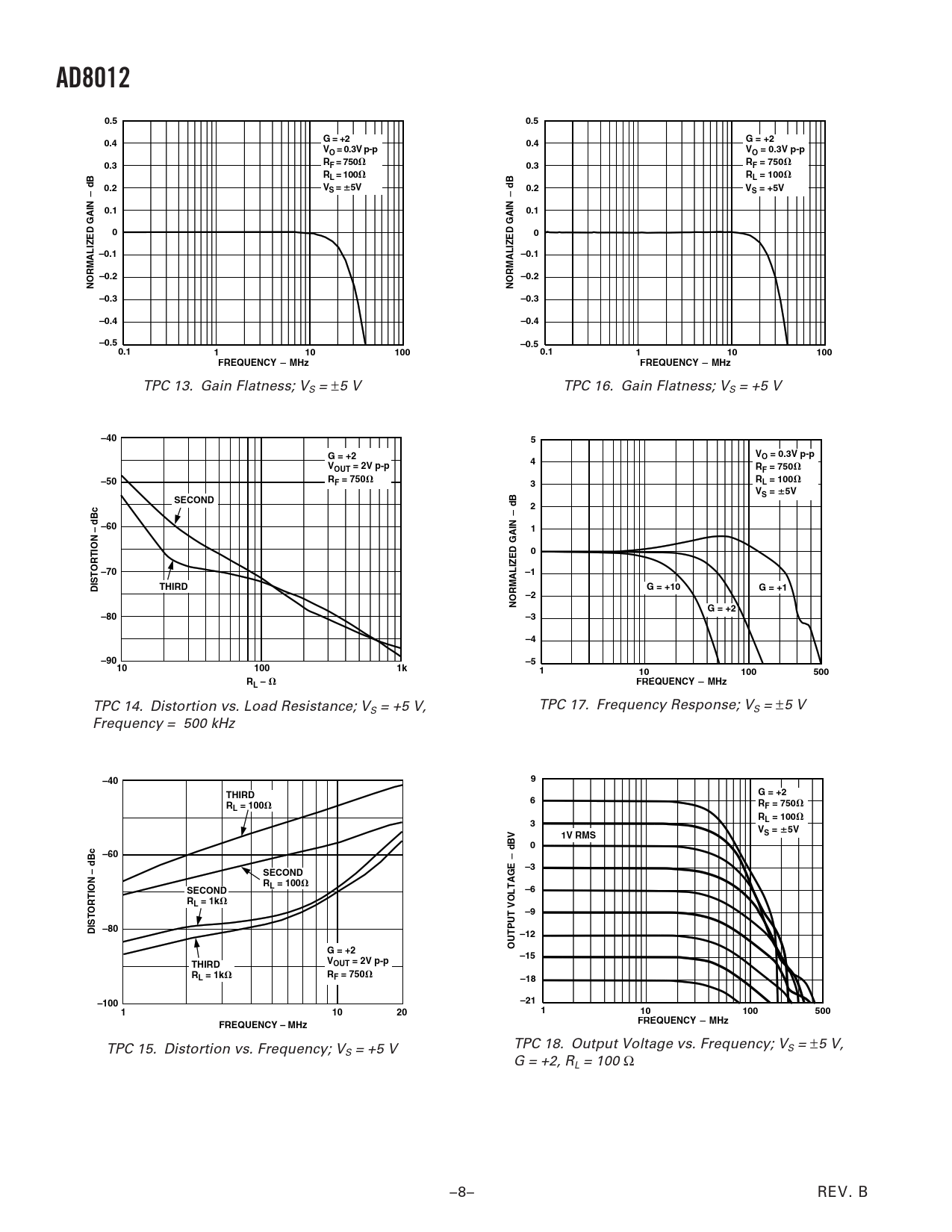 AD8012. 0.5. G = +2. 0.4. VO = 0.3V p-p. 0.3. F = 750. RL = 100. 0.2. S =. S = +5V. 0.1. –0.1. –0.2. NORMALIZED GAIN. –0.3. –0.4. –0.5. 100. FREQUENCY. MHz. –40