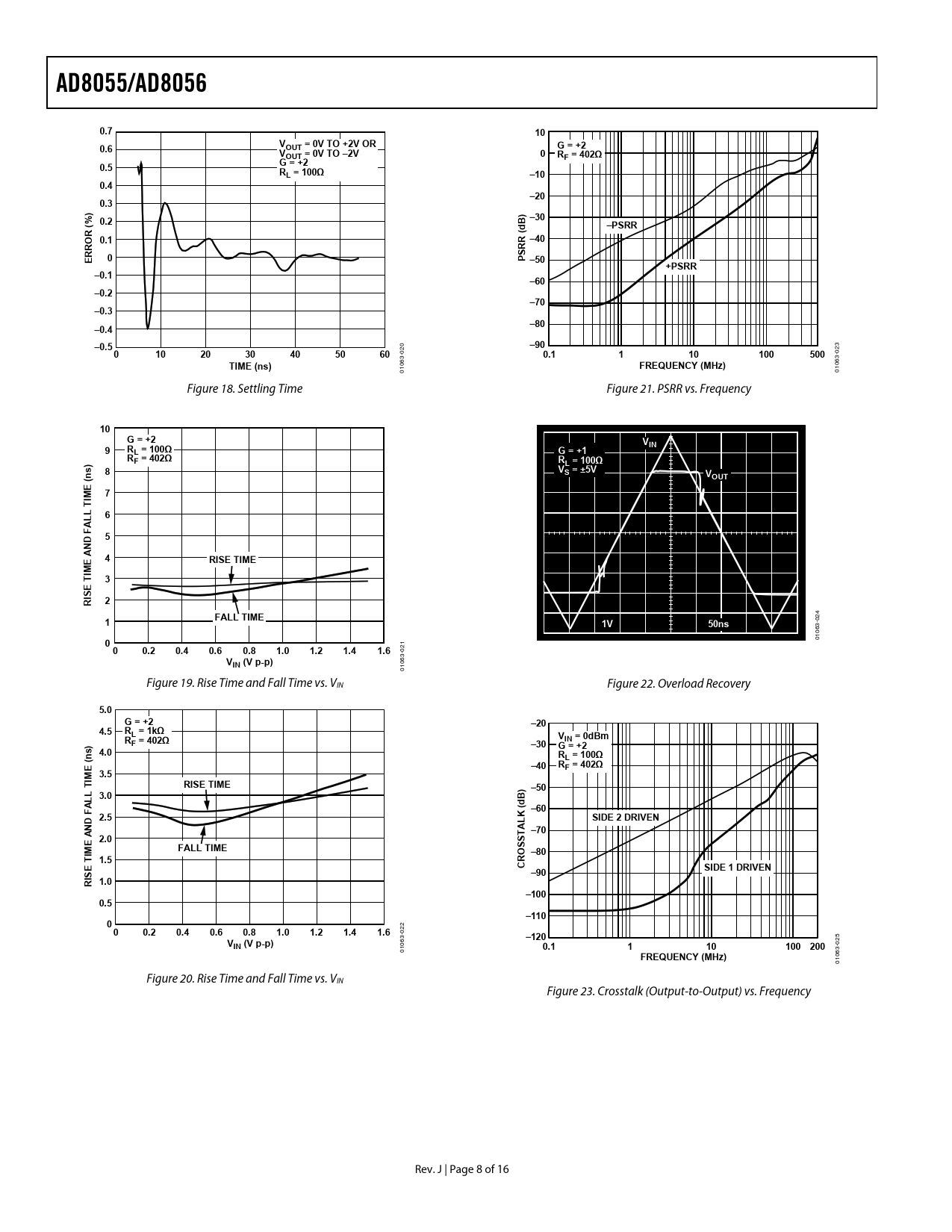 AD8055/AD8056. 0.7. 0.6. OUT = 0V TO +2V OR. G = +2. VOUT = 0V TO –2V. RF = 402Ω. 0.5. RL = 100Ω. –10. 0.4. –20. 0.3. ) % 0.2. –30. B) d. –PSRR. R ( 0.1