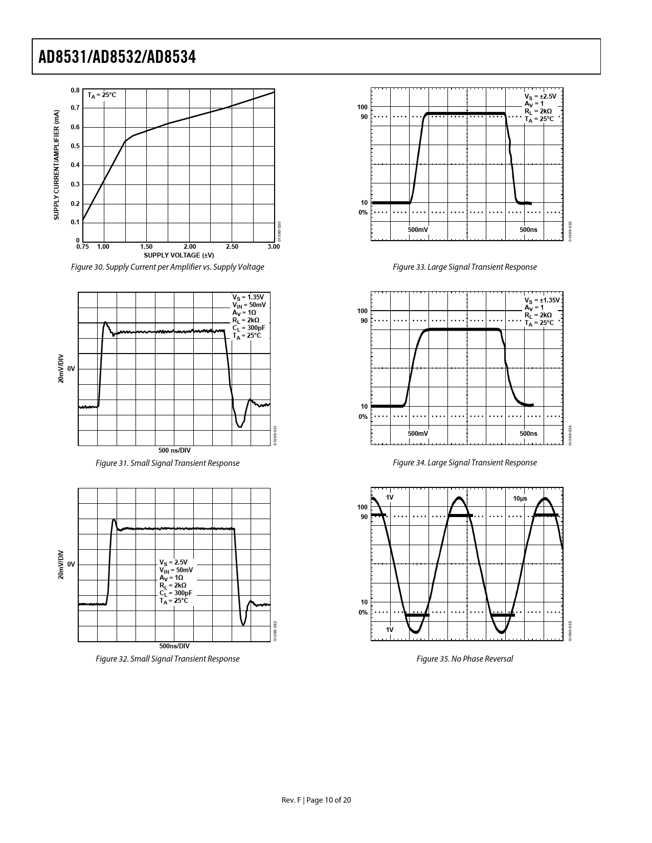 AD8531/AD8532/AD8534. 0.8. TA = 25°C. VS = ±2.5V. 0.7. 100. V = 1. RL = 2kΩ. (m R. 0.6. IE IF L P. 0.5. /AM. 0.4. URRE. 0.3. C LY. 0.2. P UP. 0.1. 500mV. 500ns