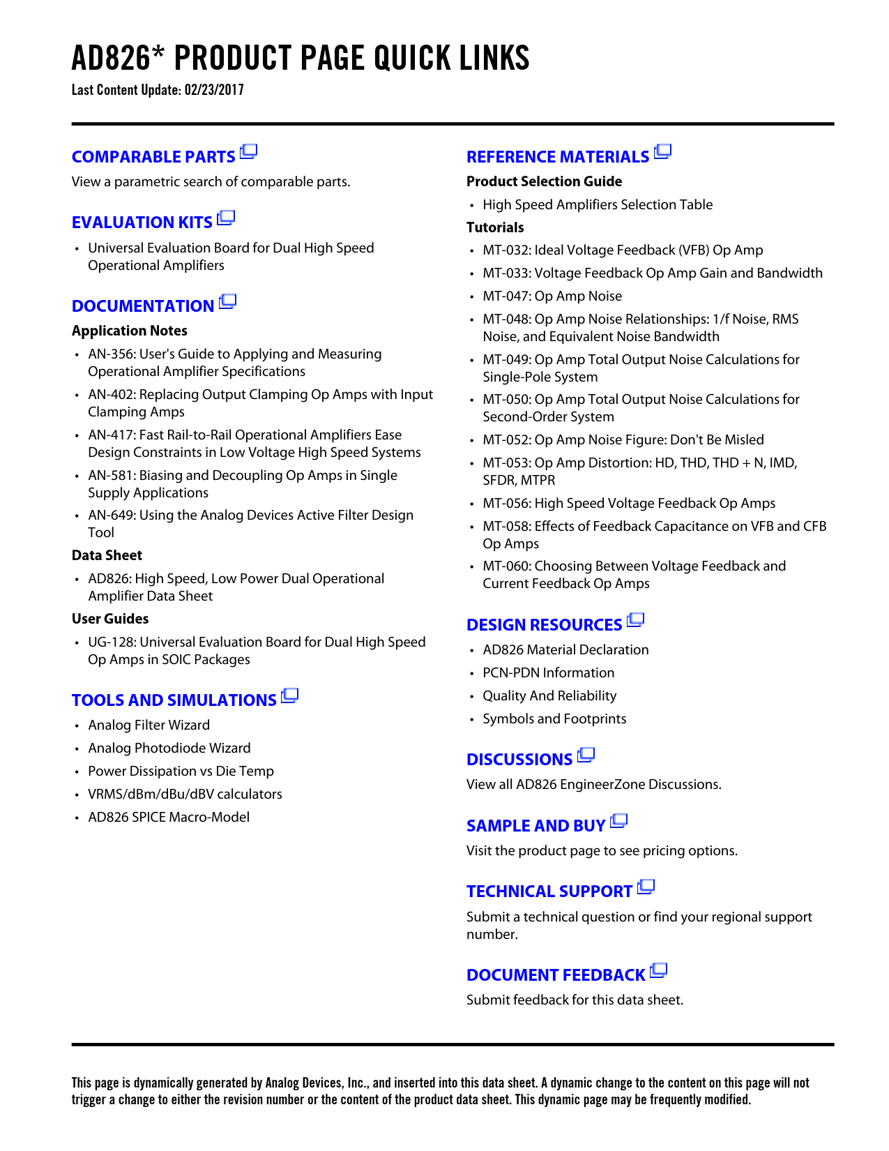 This page is dynamically generated by Analog Devices, Inc., and inserted into this data sheet. A dynamic change to the content on this page will not trigger a change to either the revision number or the content of the product data sheet. This dynamic page may be frequently modified.