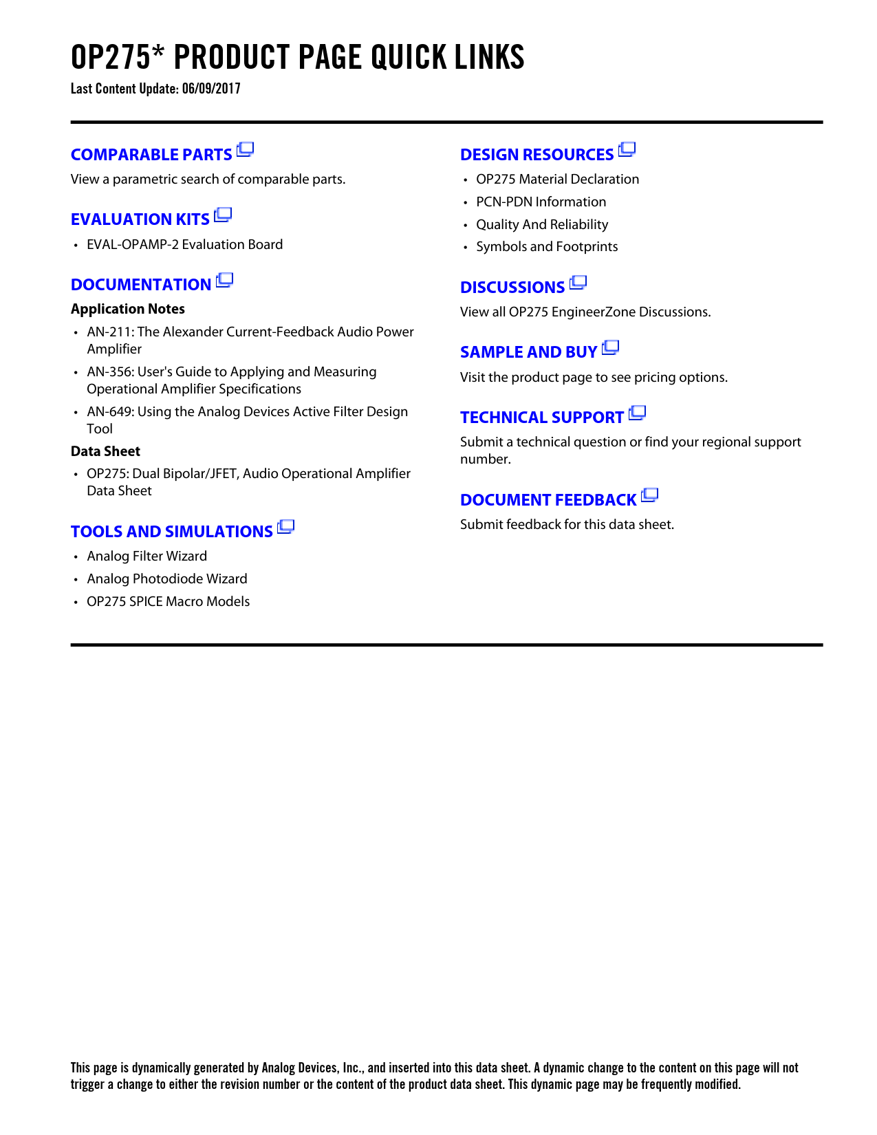 OP275* PRODUCT PAGE QUICK LINKS Last Content Update: 06/09/2017 COMPARABLE PARTS DESIGN RESOURCES