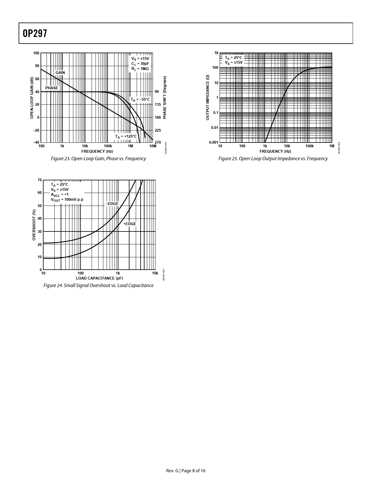 OP297. 100. S = ±15V. A = 25°C. L = 30pF. L = 1MΩ. GAIN. ) B 60. rees). PHASE. NCE. A = –55°C. OOP. 135. 0.1. HAS. 180. UT O. 0.01. –20. 225. TA = +125°C. –40. 270
