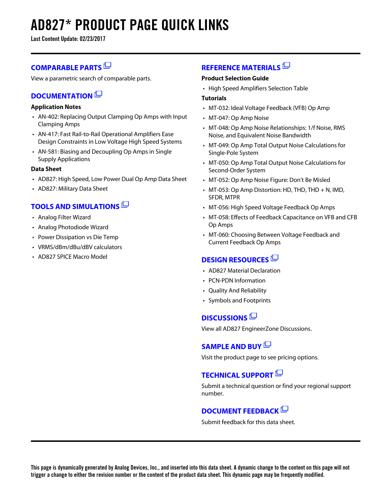 This page is dynamically generated by Analog Devices, Inc., and inserted into this data sheet. A dynamic change to the content on this page will not trigger a change to either the revision number or the content of the product data sheet. This dynamic page may be frequently modified.