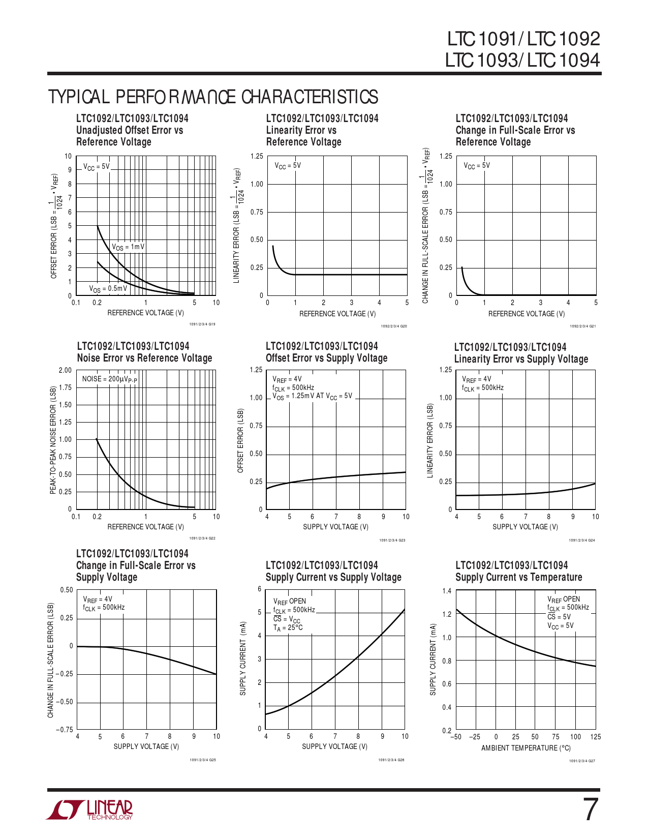 LTC1092/LTC1093/LTC1094 LTC1092/LTC1093/LTC1094 LTC1092/LTC1093/LTC1094 Noise Error vs Reference Voltage Offset Error vs Supply Voltage Linearity Error vs Supply Voltage