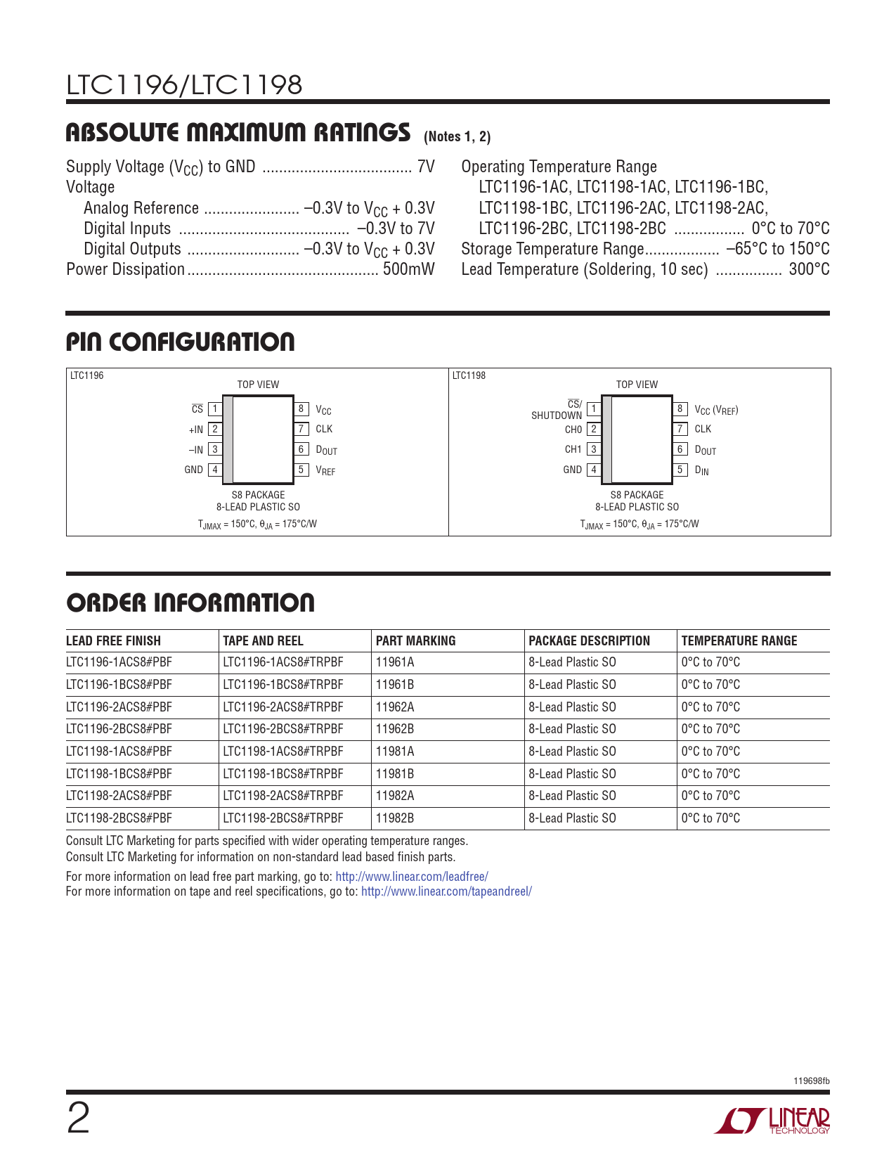 Datasheet LTC1196, LTC1198 (Analog Devices) - 2