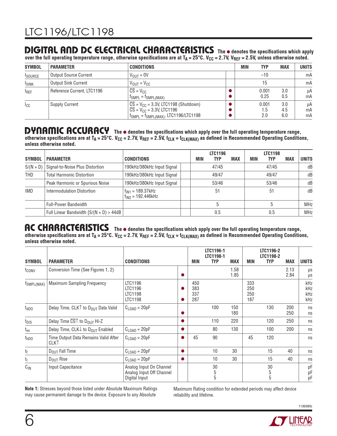 Datasheet LTC1196, LTC1198 (Analog Devices) - 6