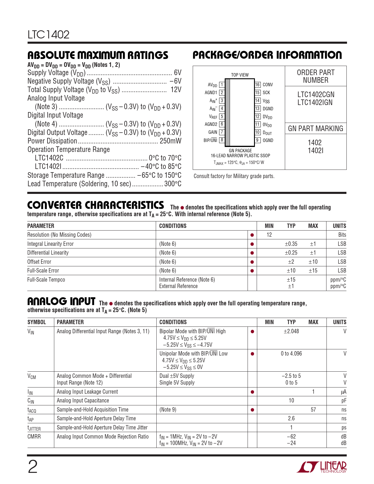 ABSOLUTE MAXIMUM RATINGS. PACKAGE/ORDER INFORMATION. AVDD = DVDD = OVDD = VDD (Notes 1, 2). CONVERTER CHARACTERISTICS The