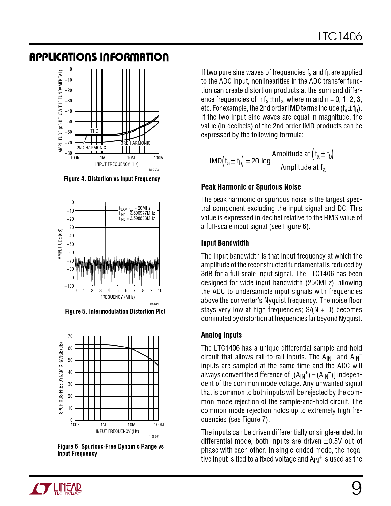APPLICATIONS INFORMATION Figure 4 Distortion vs Input Frequency Peak Harmonic or Spurious Noise Input Bandwidth