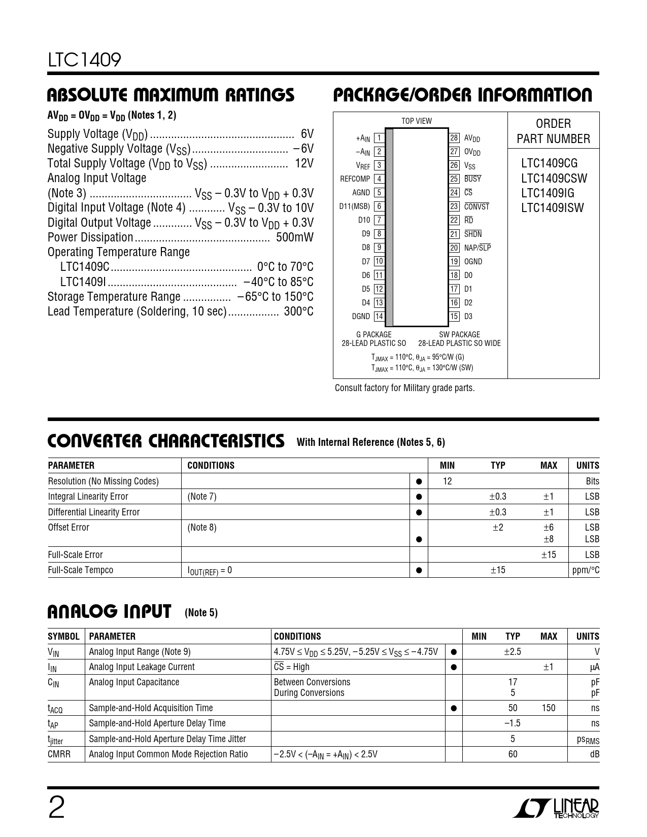 Datasheet LTC1409 (Analog Devices) - 2