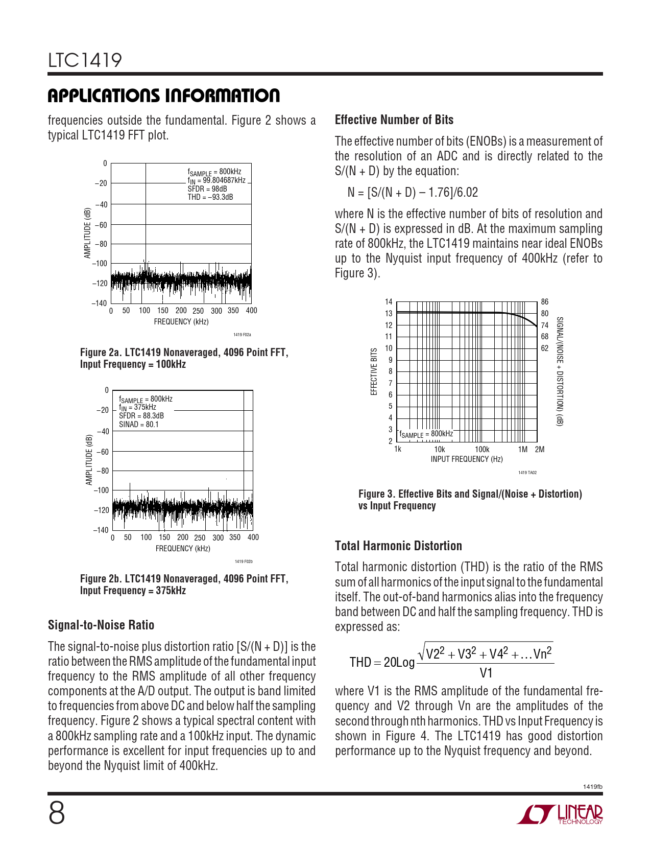 APPLICATIONS INFORMATION. Effective Number of Bits. Figure 2a. LTC1419 Nonaveraged, 4096 Point FFT,. Input Frequency = 100kHz