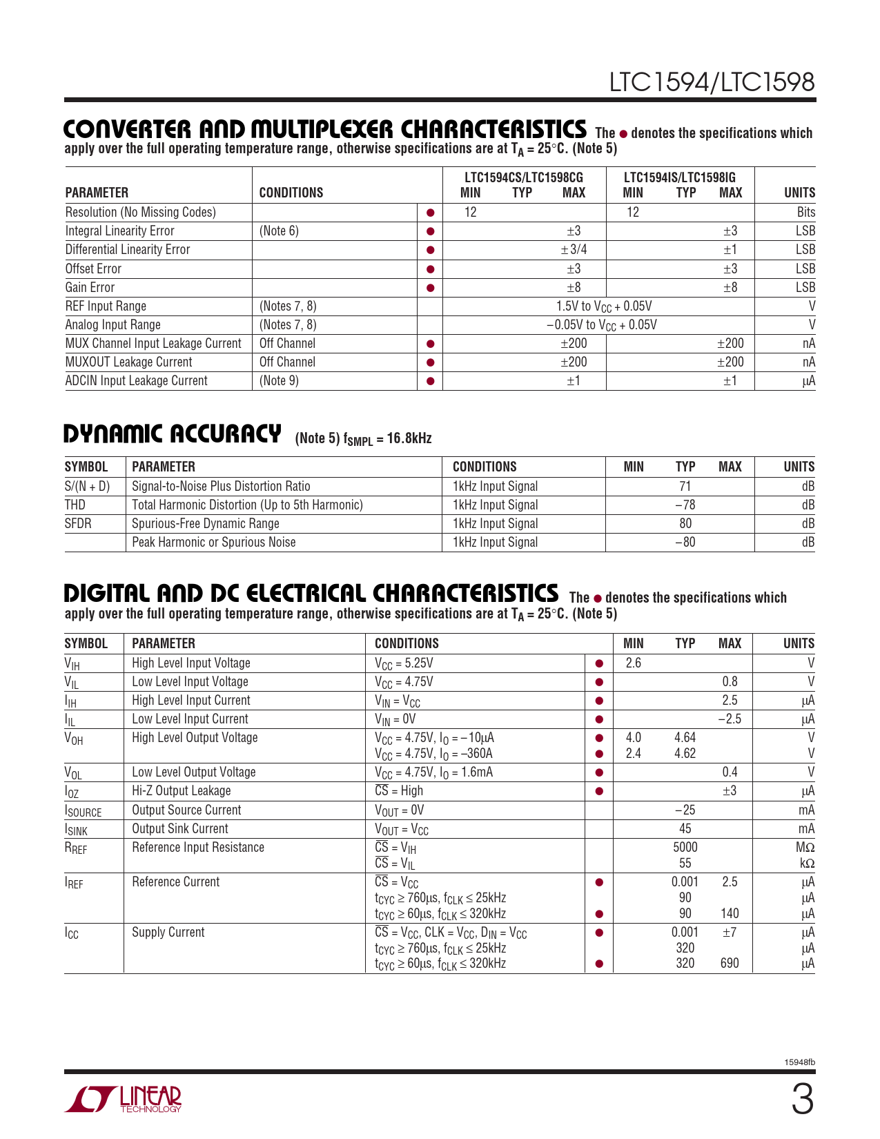 Datasheet LTC1594, LTC1598 (Analog Devices) - 3